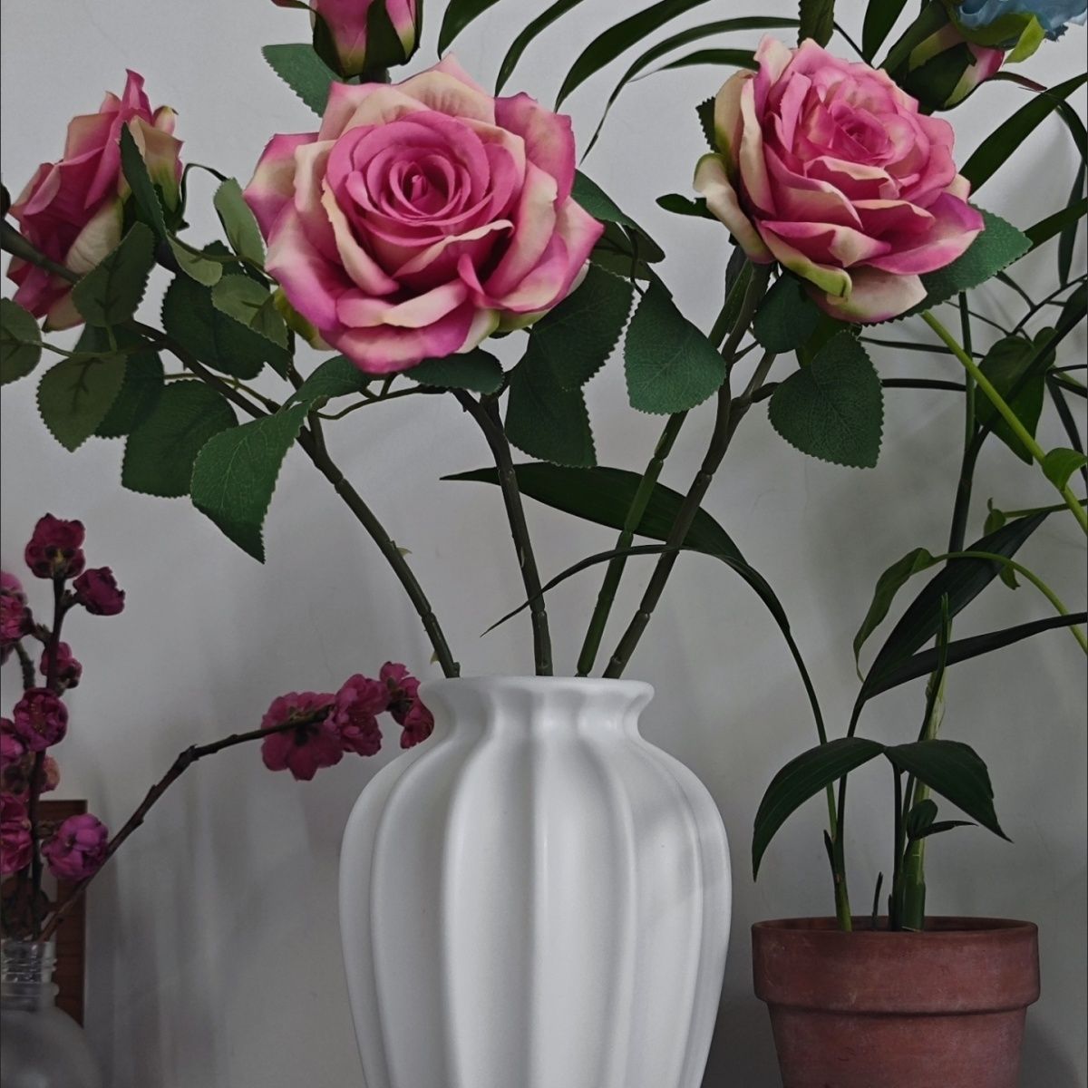 원래 제조업체 축제 꽃병 새로운 중국 스타일 새해 장식 장식품 시뮬레이션 꽃 흰색 플라스틱 꽃병은 물을 저장할 수 있습니다스토어 가기