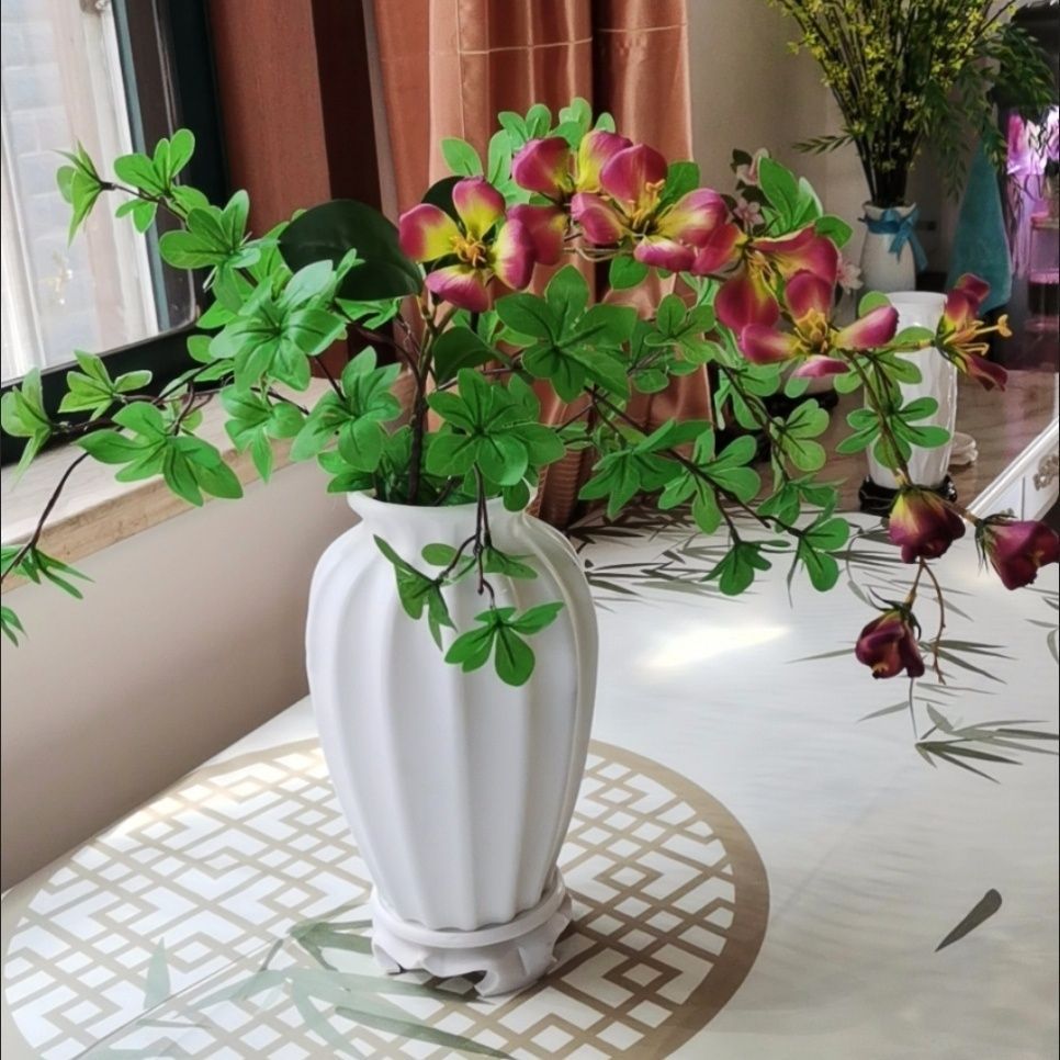 원래 제조업체 축제 꽃병 새로운 중국 스타일 새해 장식 장식품 시뮬레이션 꽃 흰색 플라스틱 꽃병은 물을 저장할 수 있습니다