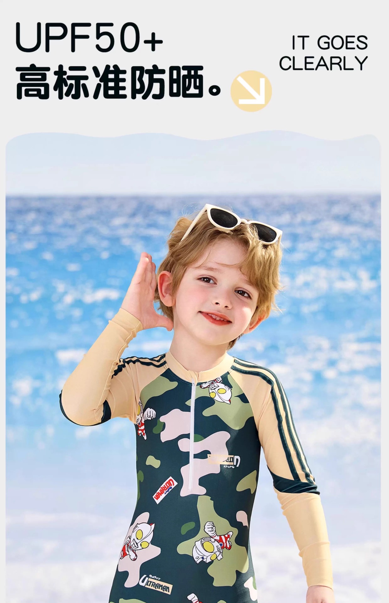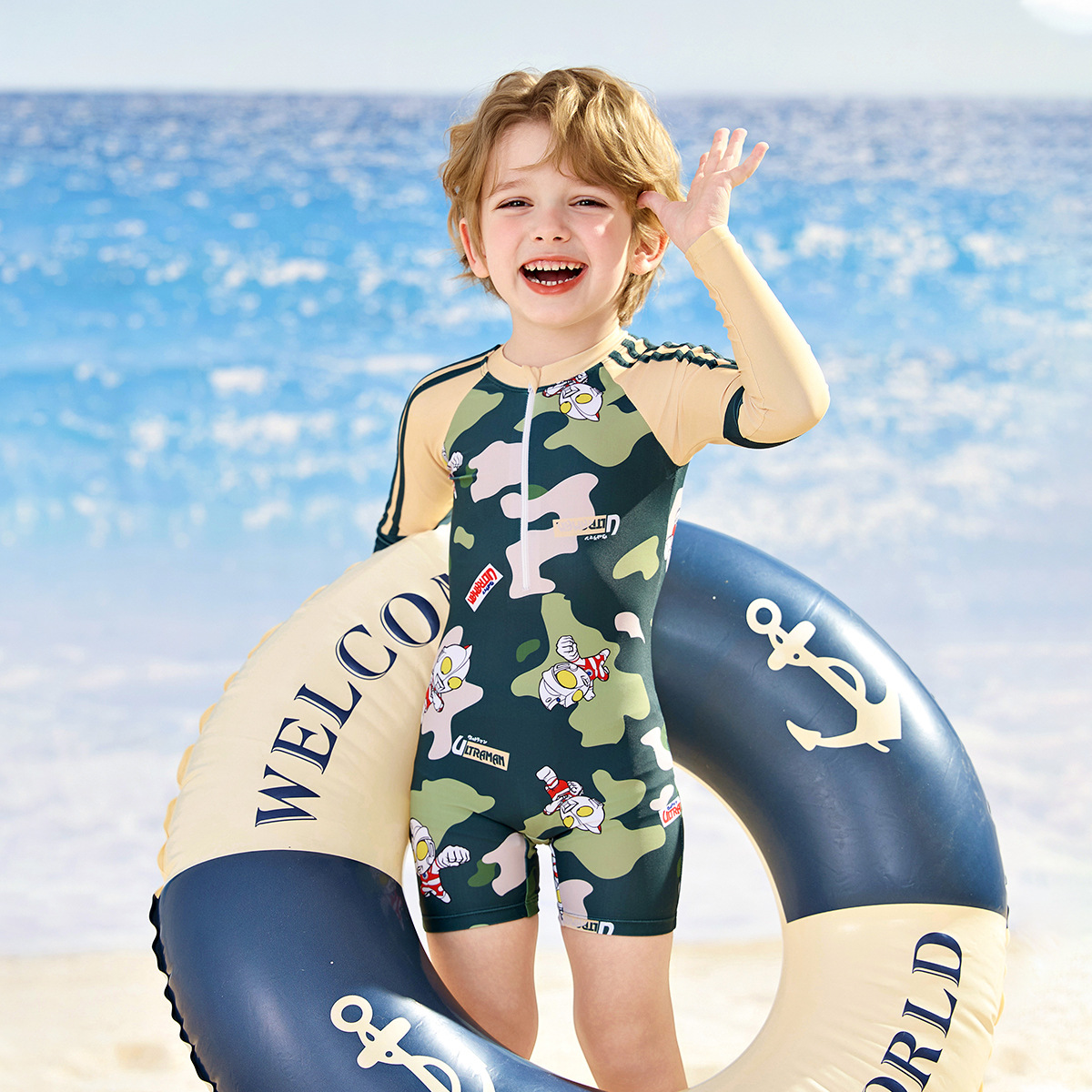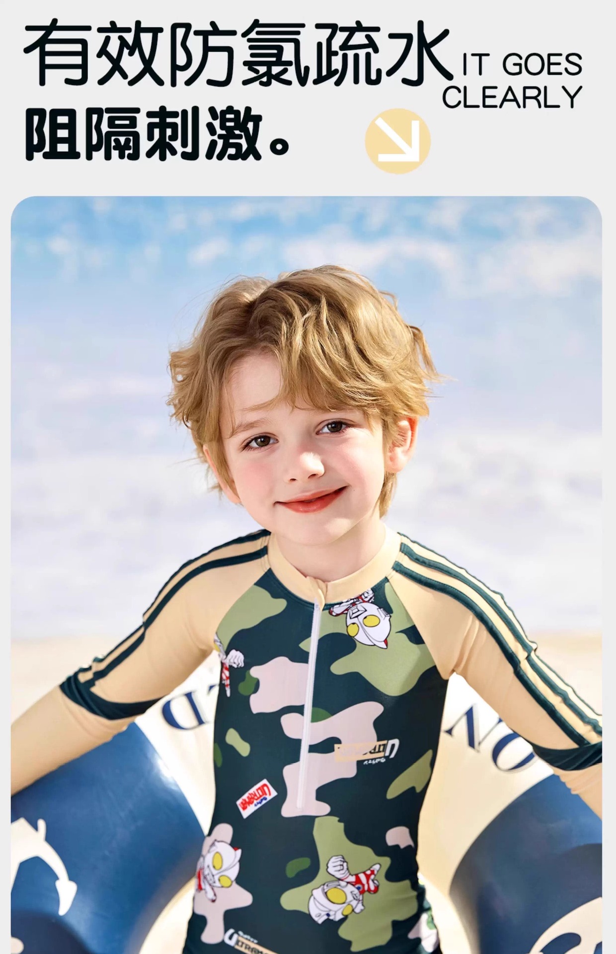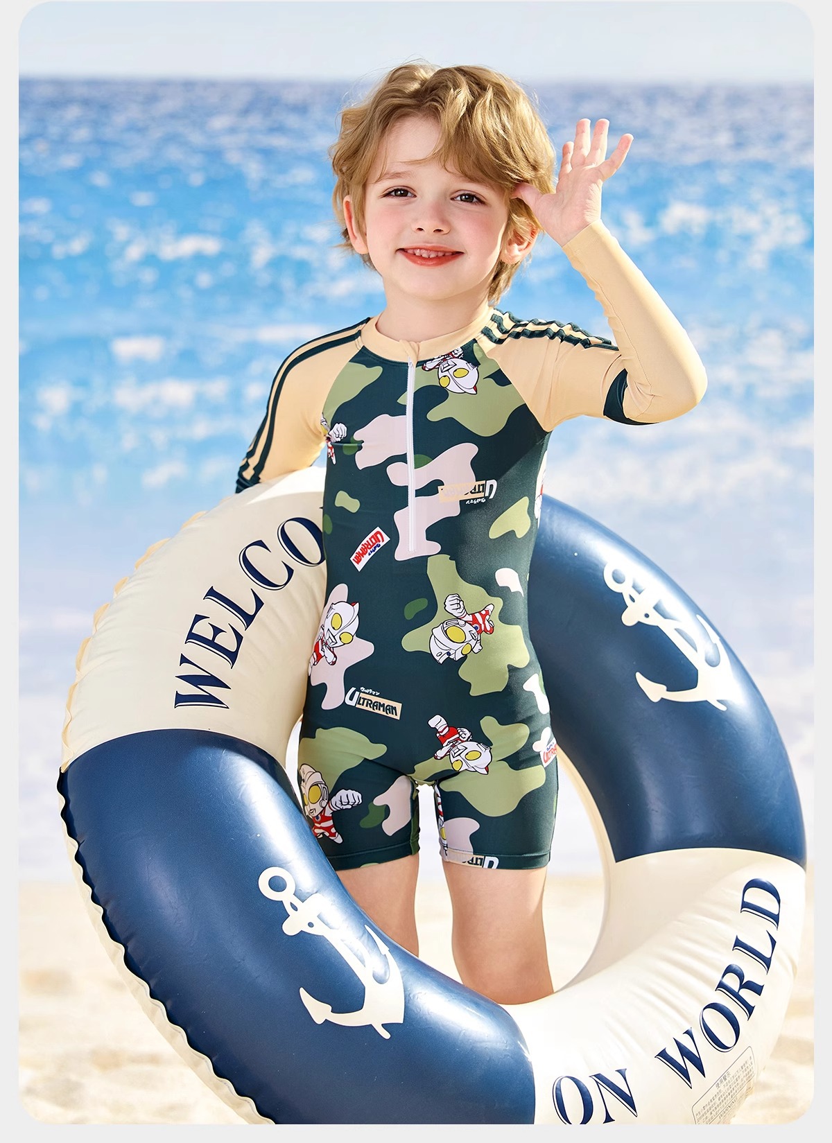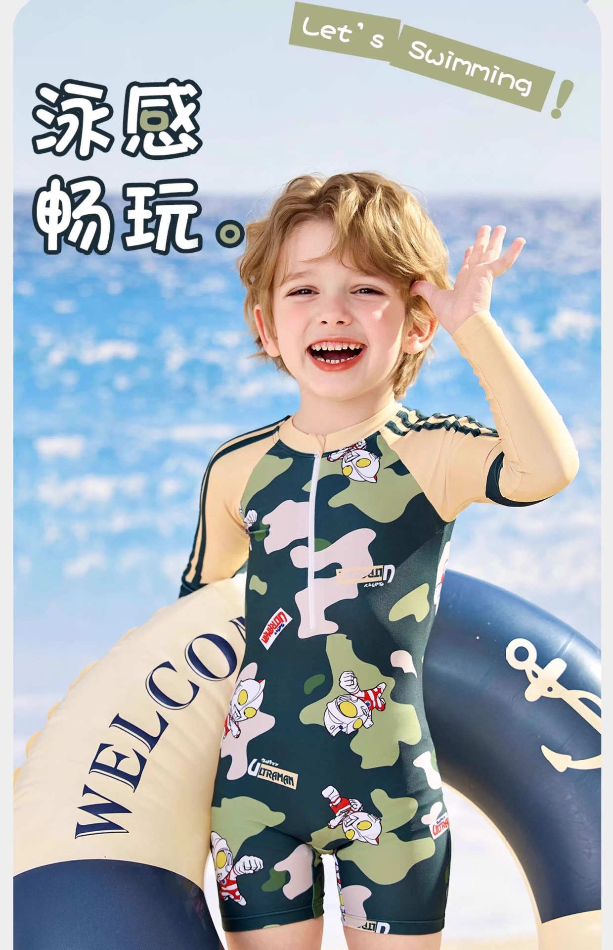클래식 울트라맨 아동용 수영복 남아용 2026년 신형 원피스 수영복 중대형 아동용 해변 자외선 차단 속건복 세트스토어 가기