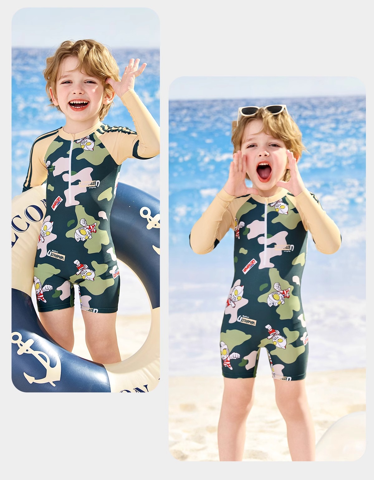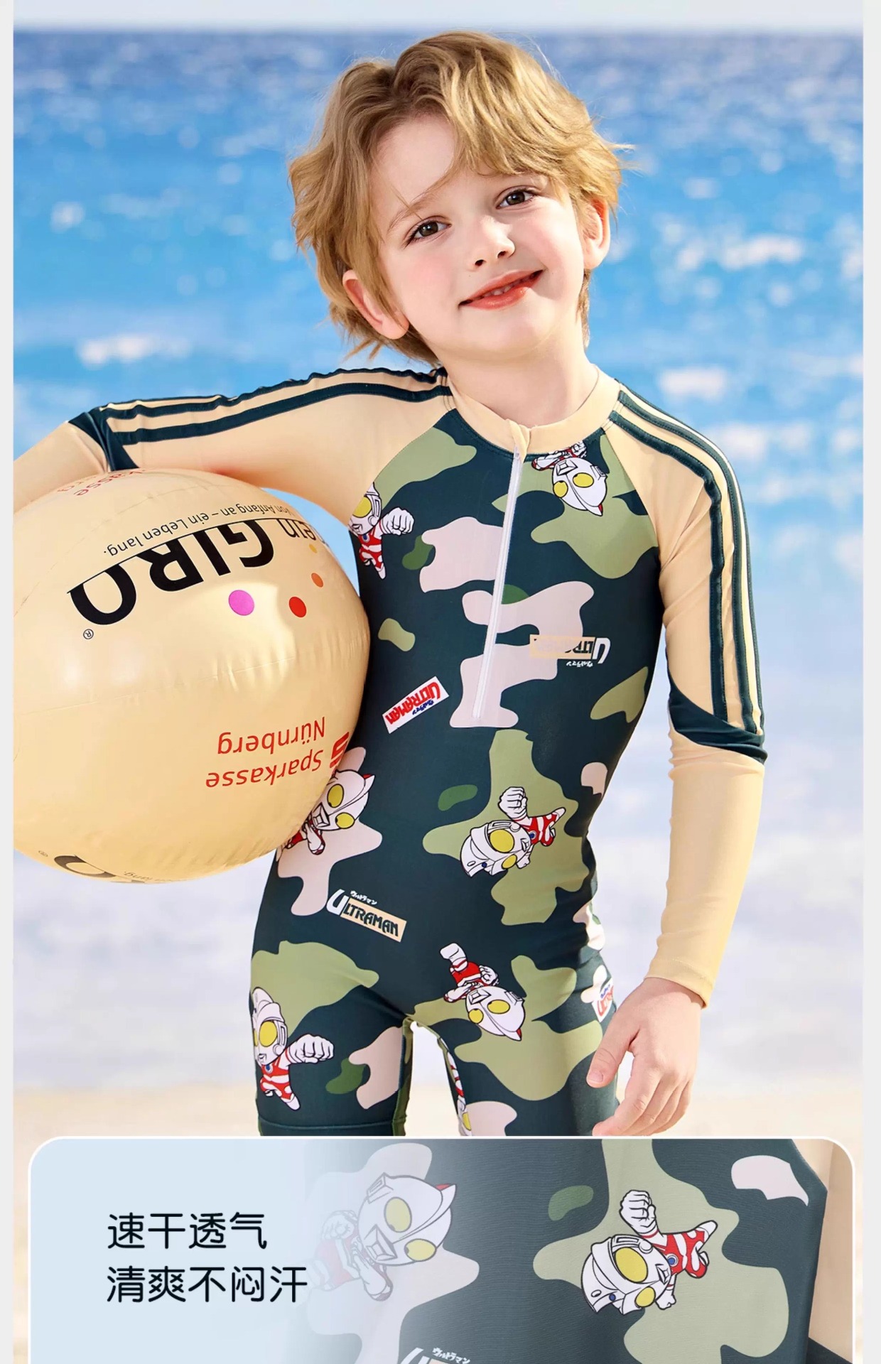 클래식 울트라맨 아동용 수영복 남아용 2026년 신형 원피스 수영복 중대형 아동용 해변 자외선 차단 속건복 세트