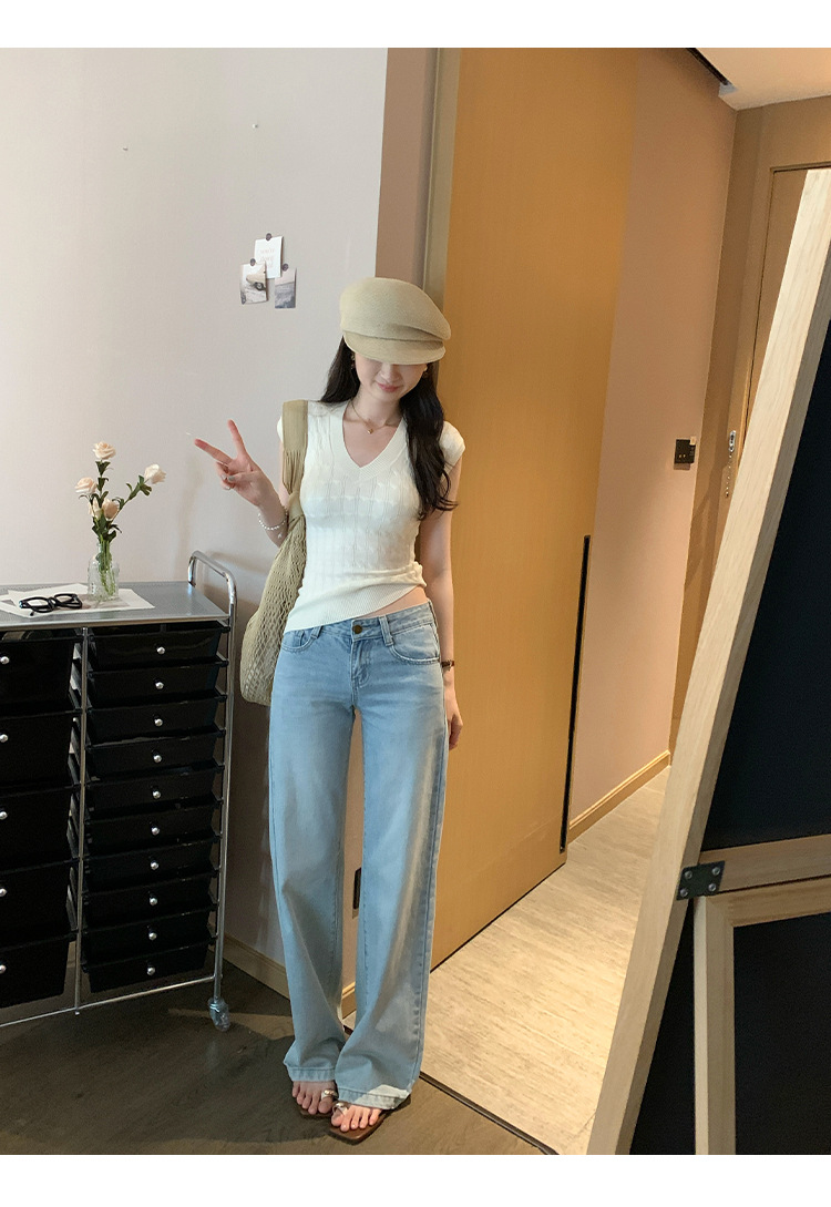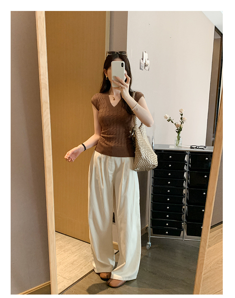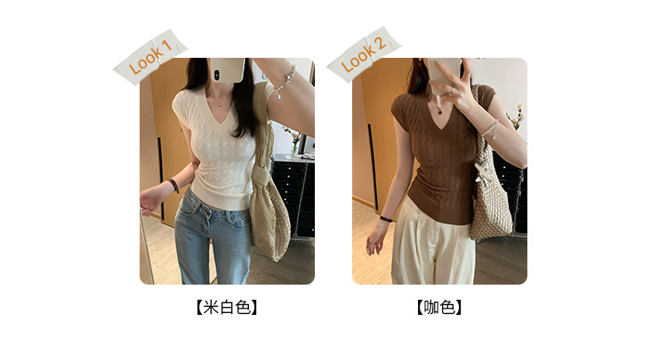 여성을위한 미국 복고풍 v 넥 니트 반팔 티셔츠 2025 여름 새로운 스타일 핫 소녀 연령 감소 슬림 스트레치 기질 탑스토어 가기