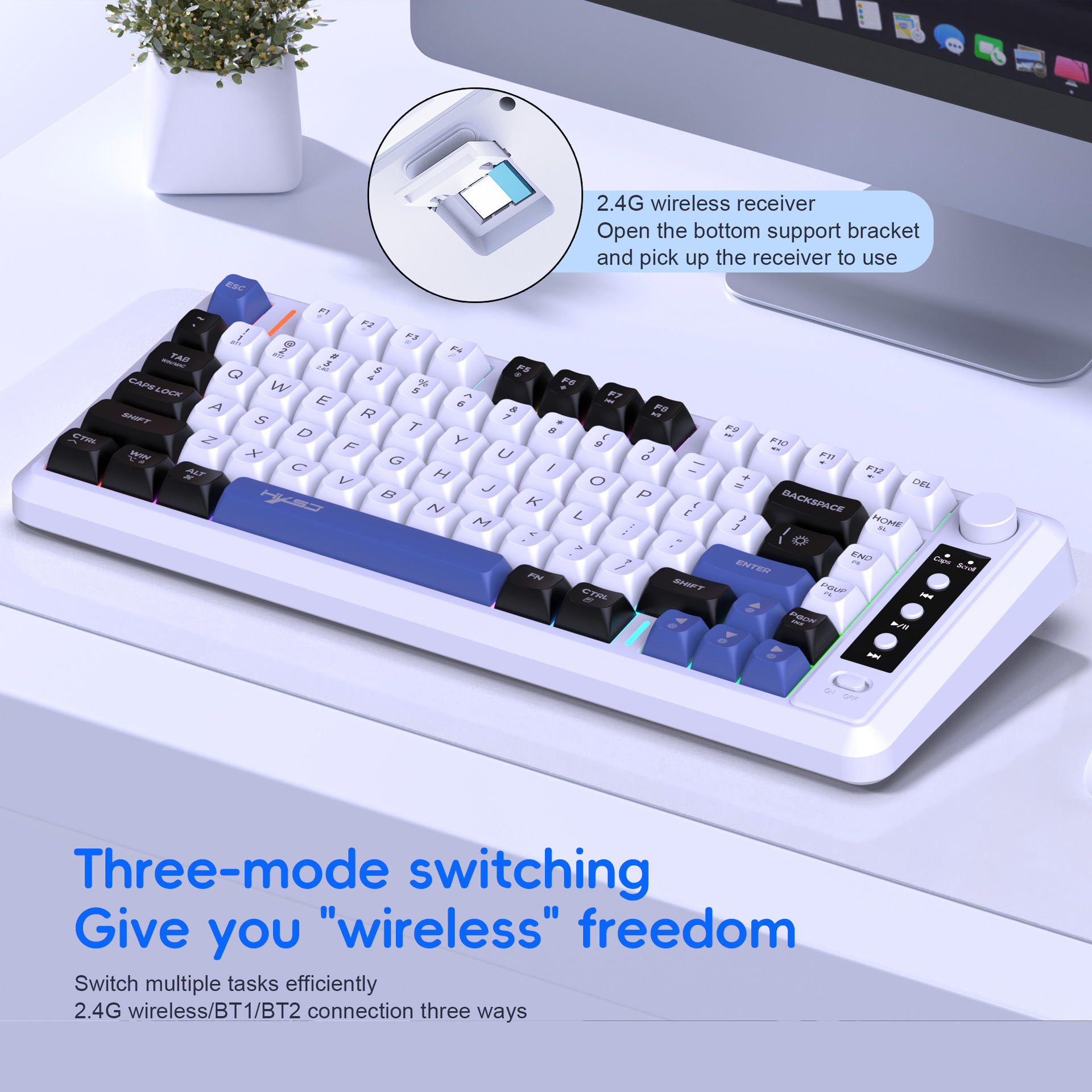 Connection mode: 2.4G+BT1+BT2