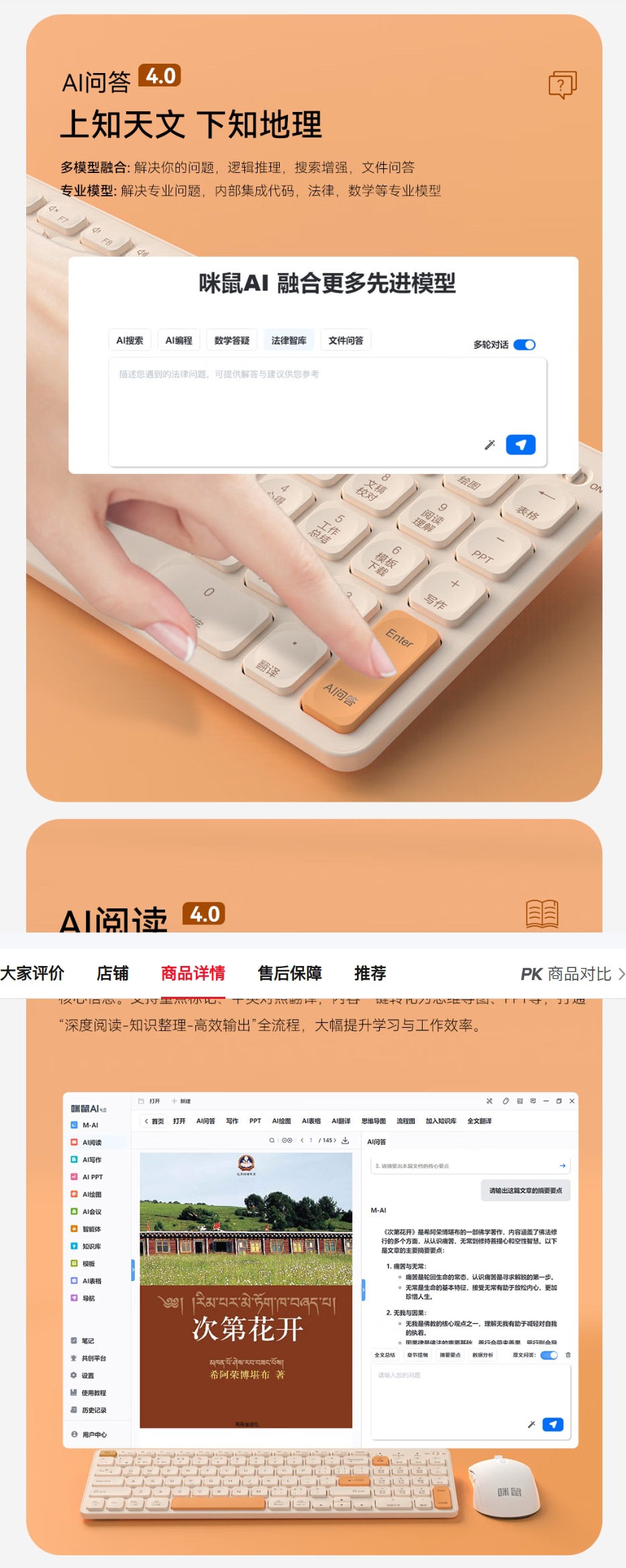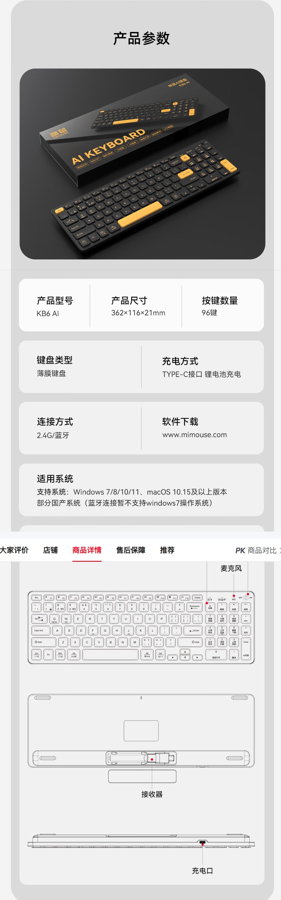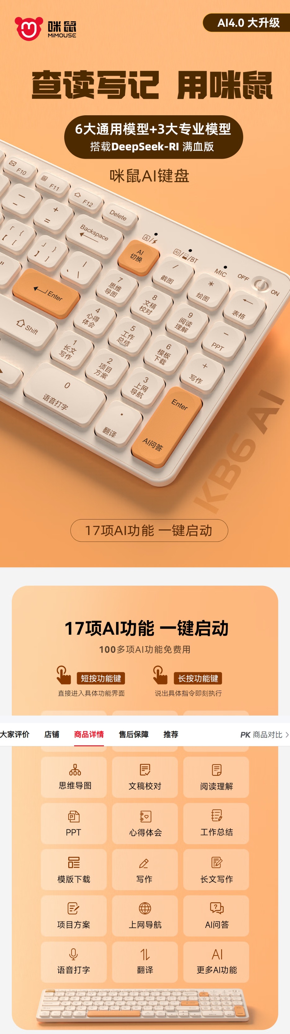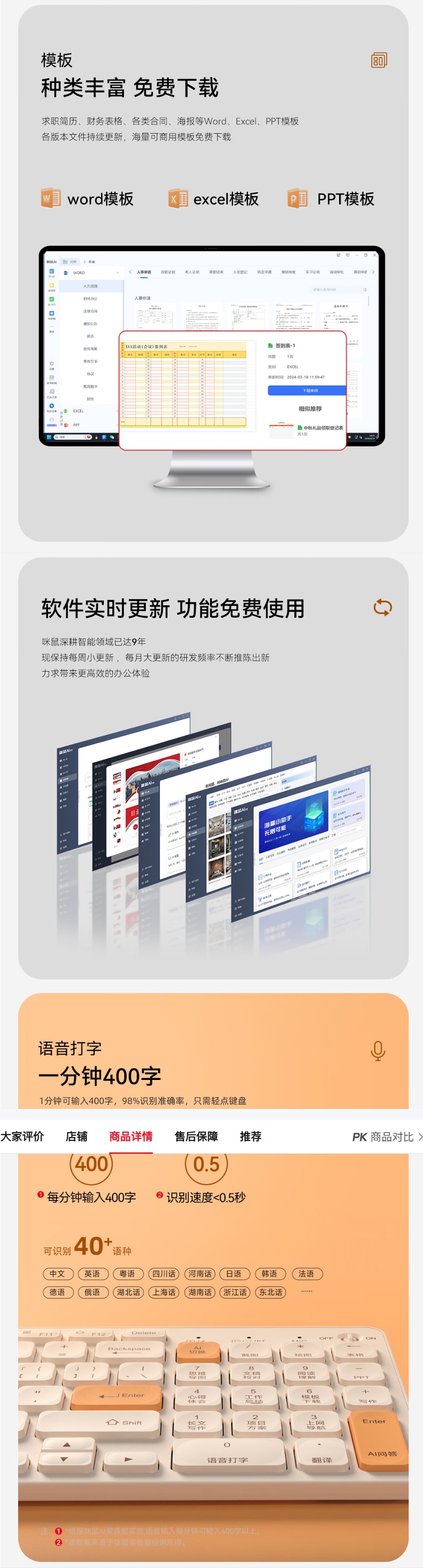 Mimi Mouse AI 지능형 음성 키보드 및 마우스 세트 무선 블루투스 오피스 노트북 번역 및 쓰기 PPT스토어 가기