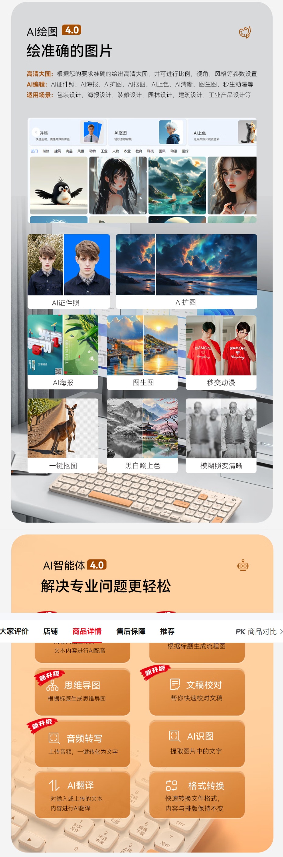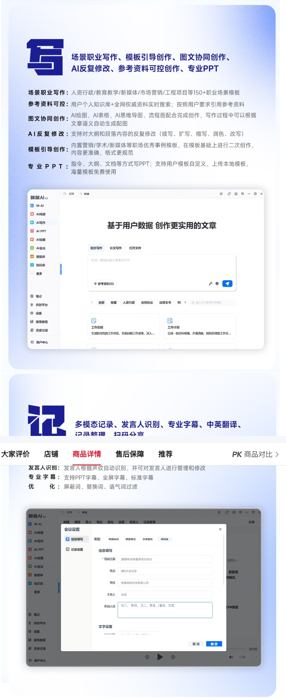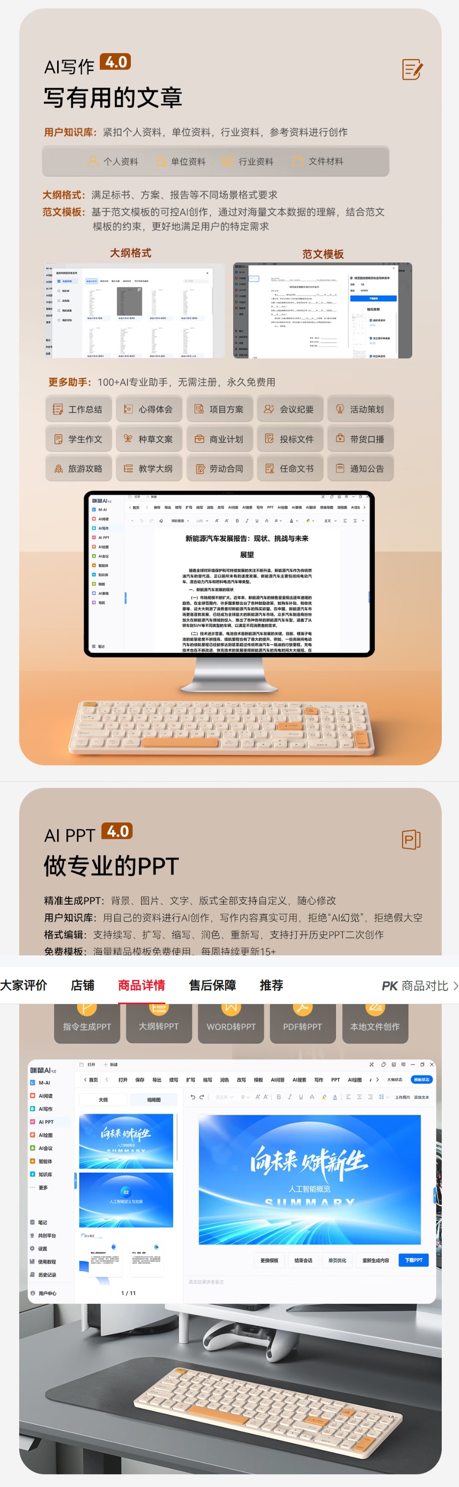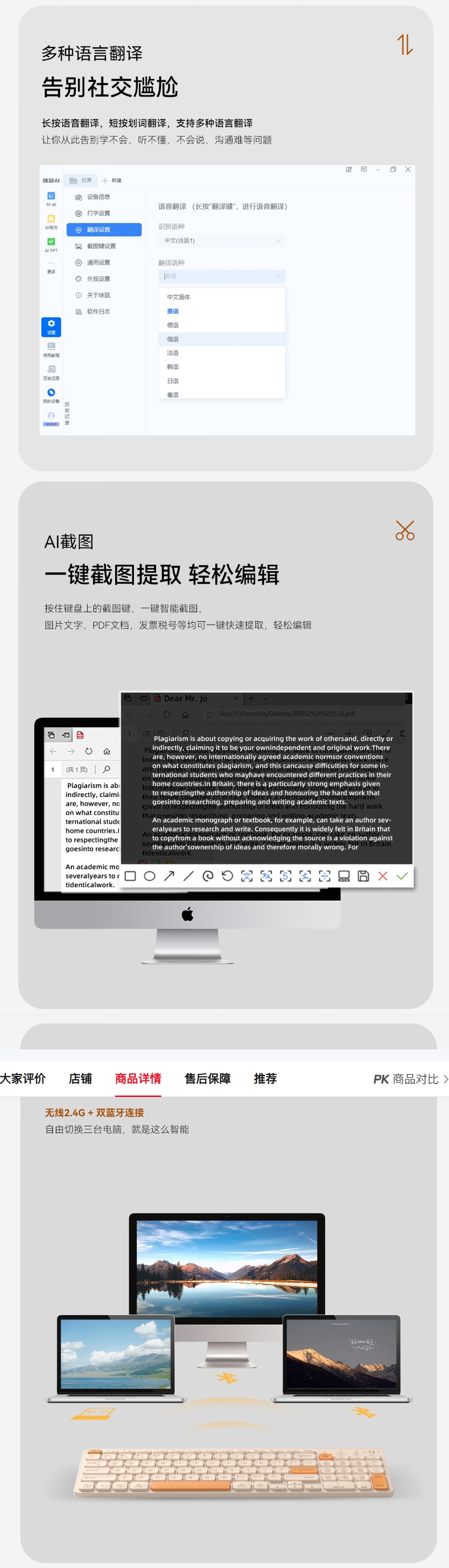 Mimi Mouse AI 지능형 음성 키보드 및 마우스 세트 무선 블루투스 오피스 노트북 번역 및 쓰기 PPT스토어 가기