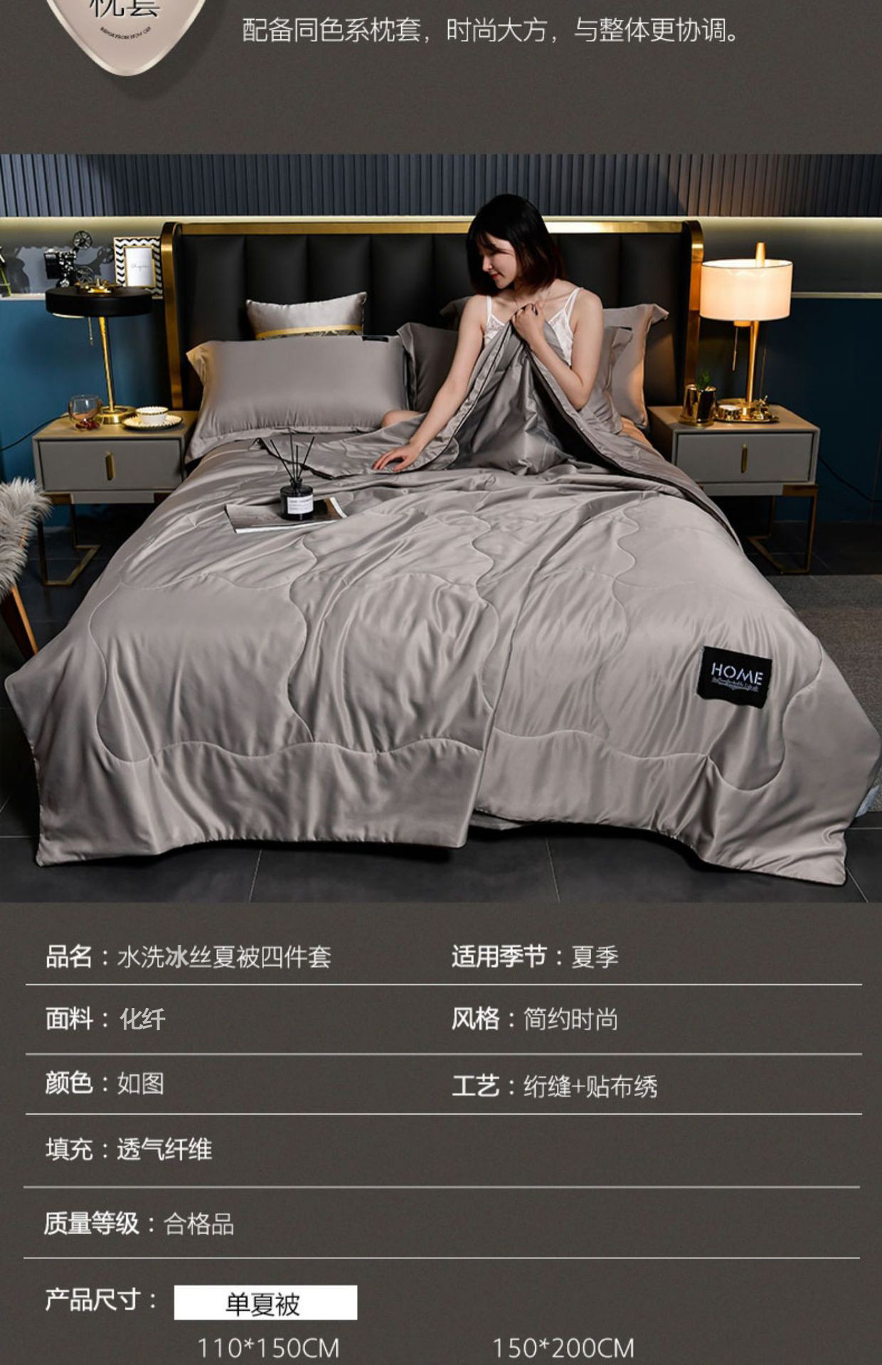 • 200*230cm 아이스 실크 여름 이불 4종 세트 [여름 이불 1장 + 침대 시트 1장 + 베갯잇 2장]