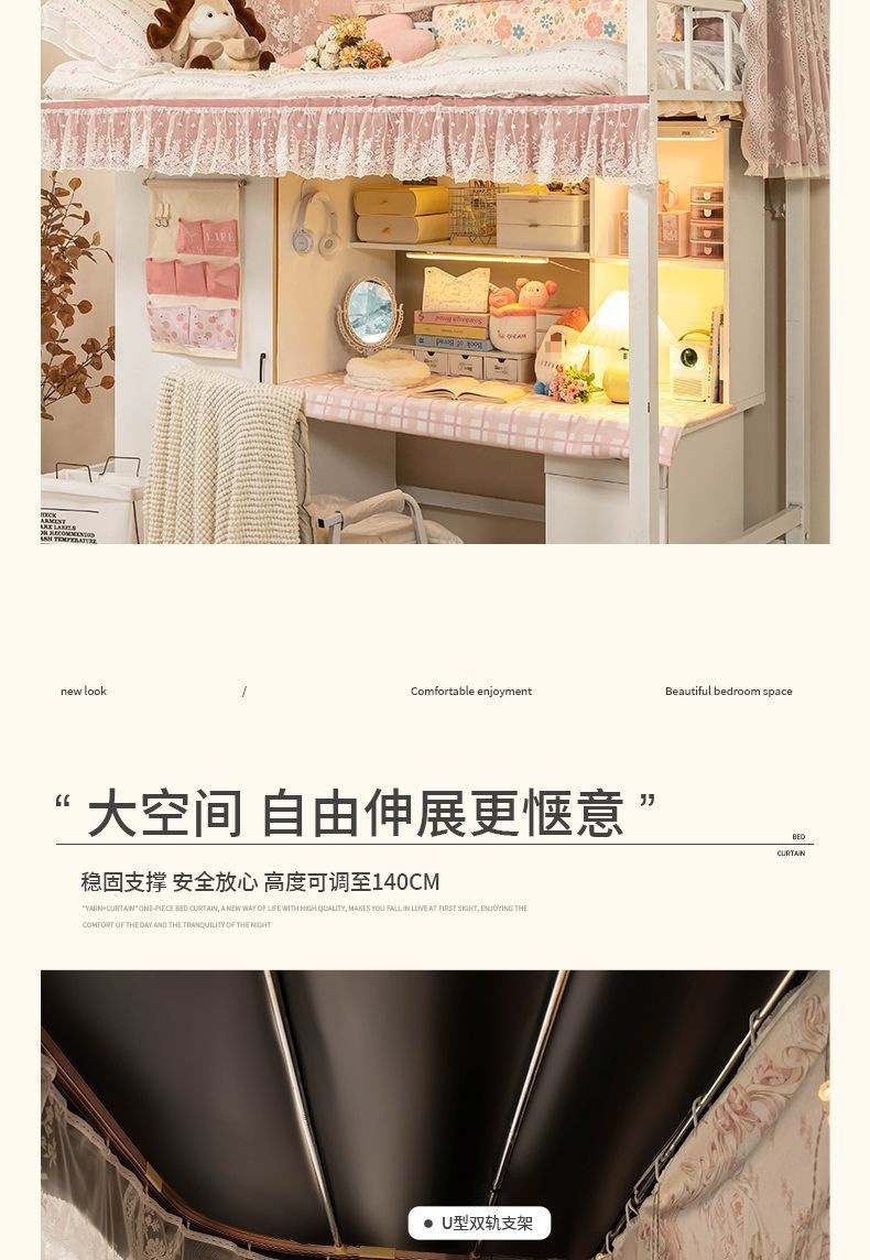 기숙사 이층 침대 커튼, 학생 기숙사 이층 침대 차단, 강력한 차광 커튼, 여성용 레이스 거즈 모기장 트랙 제조업체스토어 가기