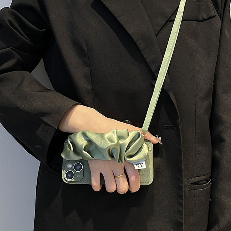 Apple 16 휴대 전화 케이스에 적합한 녹색 실크 스카프 손목 밴드 크로스 바디 로프 iphone15 실리콘 14promax 하드 쉘 여성