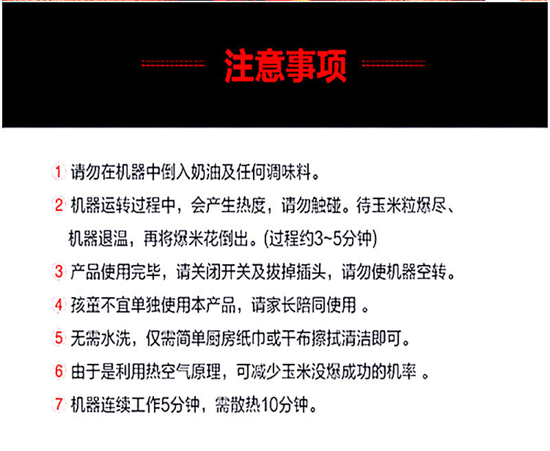此款为原味爆米花机,只能用球形小玉米哦。不可以加糖加油,奶油爆米花和焦糖爆米花需要爆出来之后再进行加工哦!