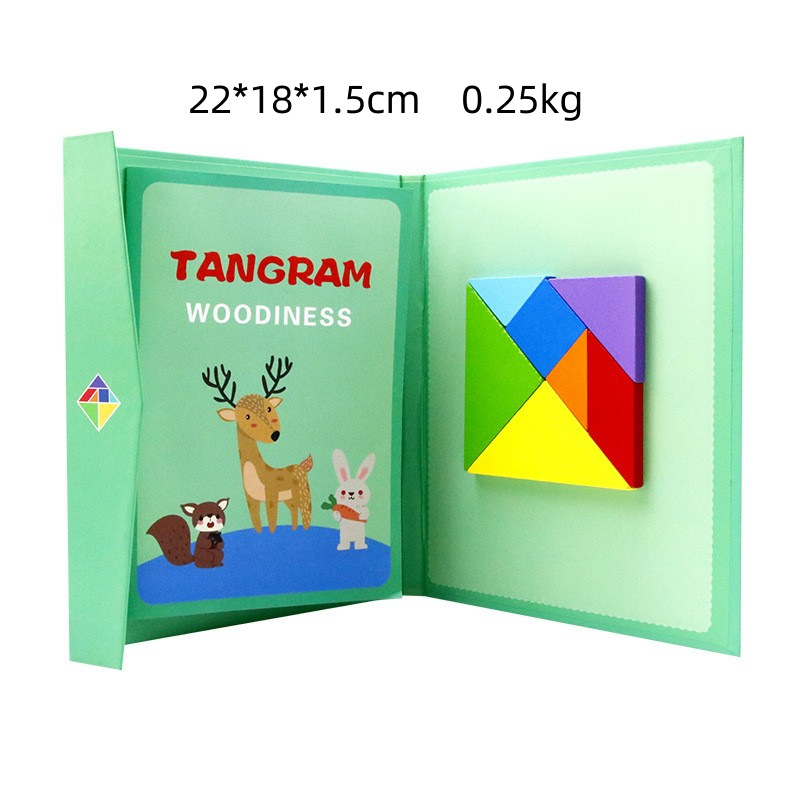 红/绿/蓝书本式七巧板:吸塑18*22*1.5cm,净重0.25kg,装箱90套,外箱57*45*23cm,整箱 23kg