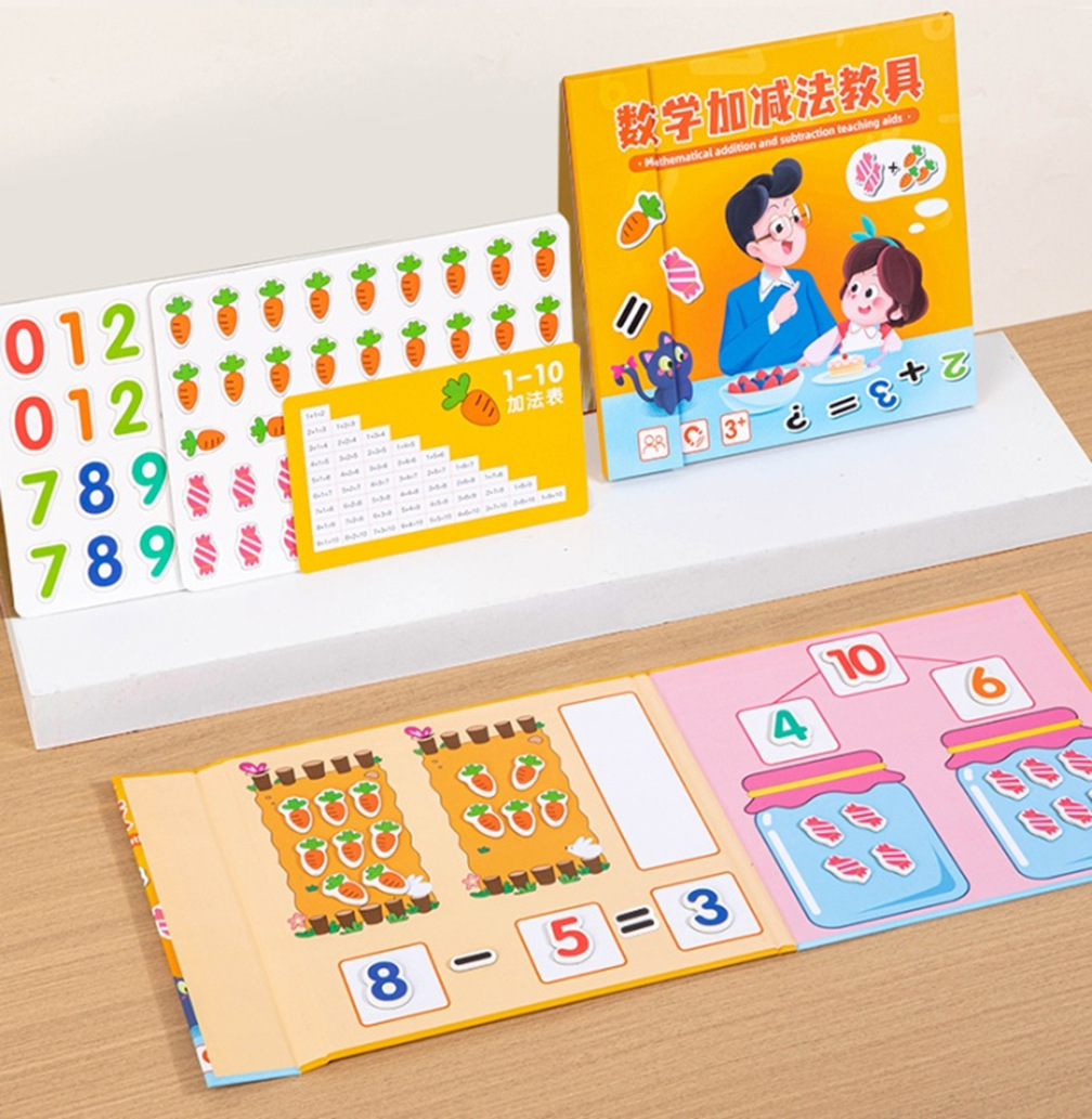 磁性数字加减法教具:吸塑22*20.5*1.5CM,净重0.36KG,装箱40套,外箱43*28.5*23.5CM,整箱15/14.4KG