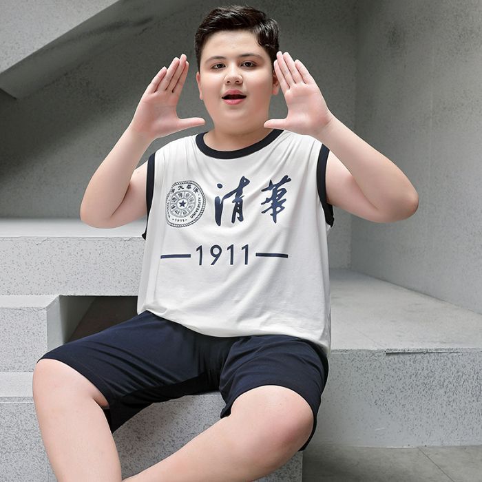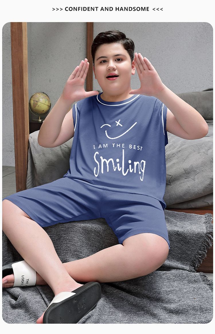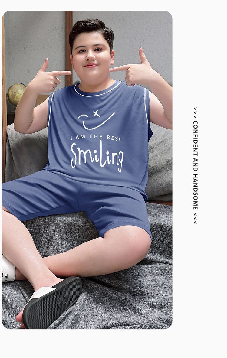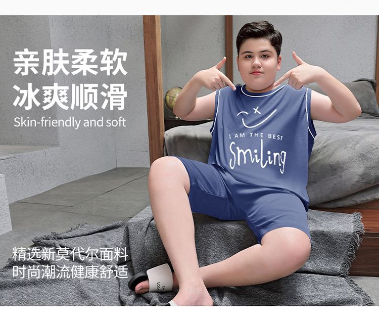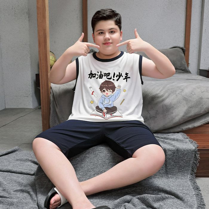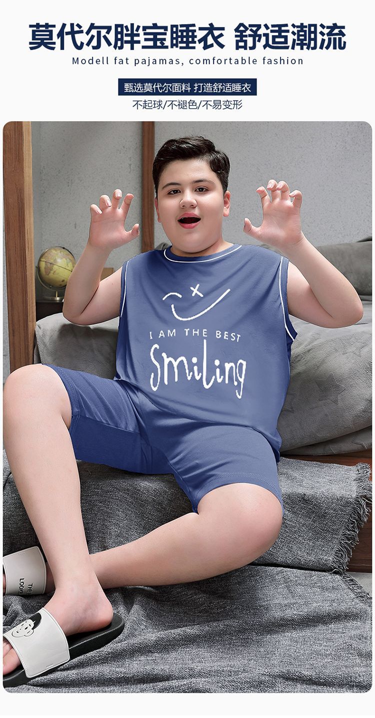 뚱뚱한 소년 잠옷 여름 새로운 모달 민소매 조끼 반바지 뚱뚱한 소년 대형 중형 및 대형 아동복스토어 가기