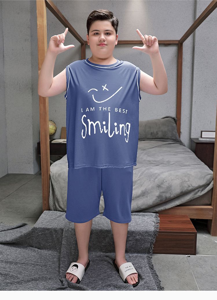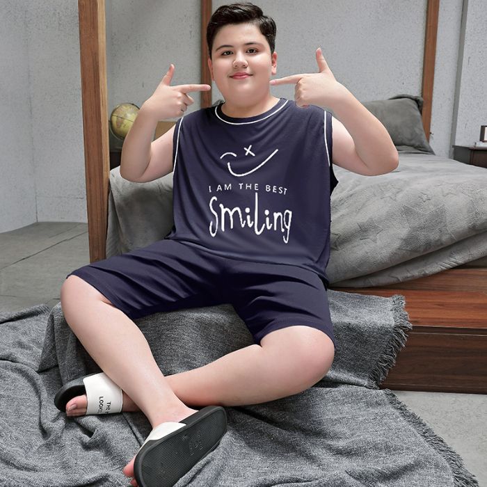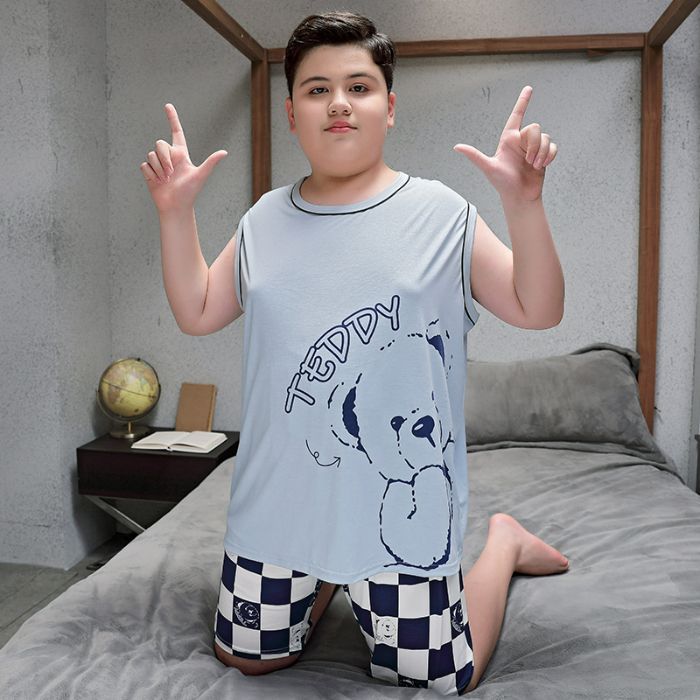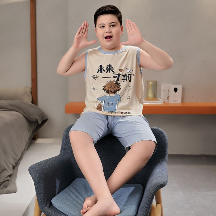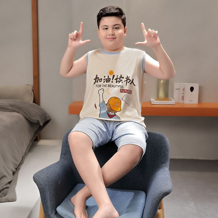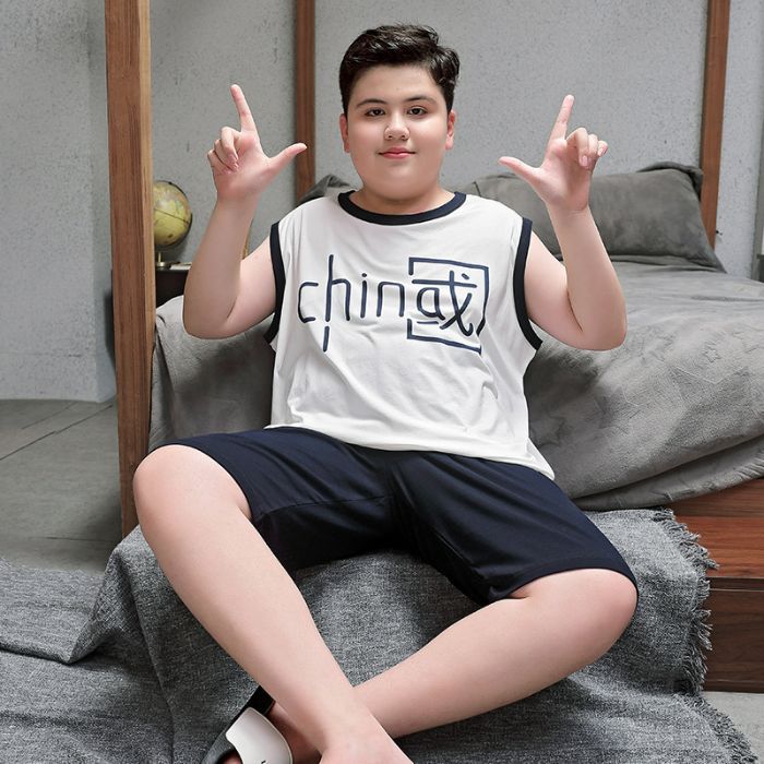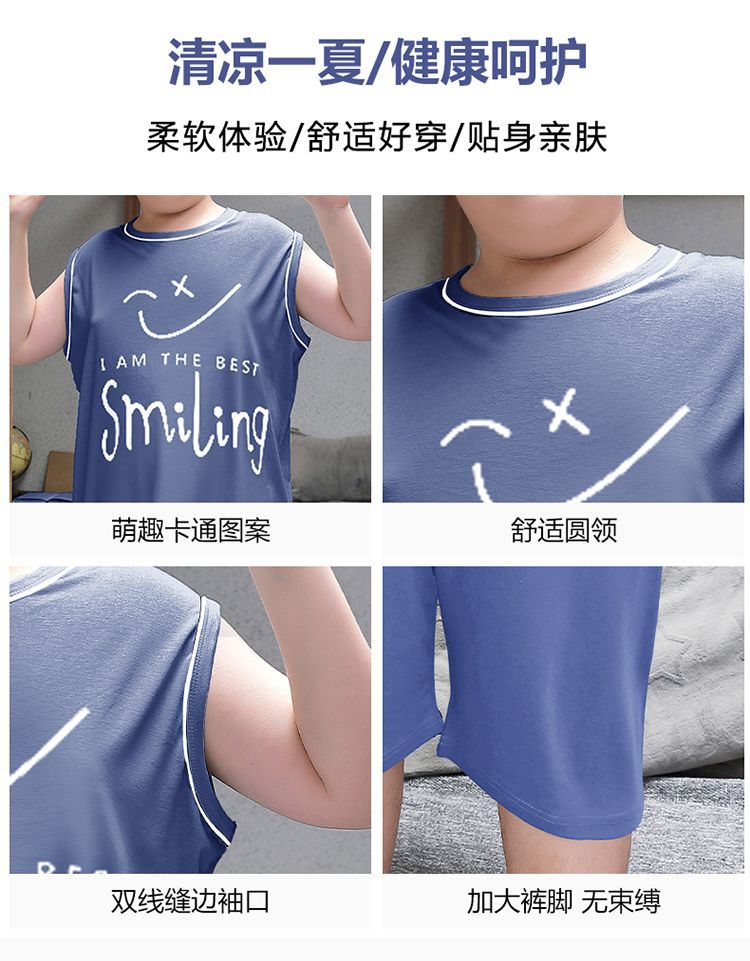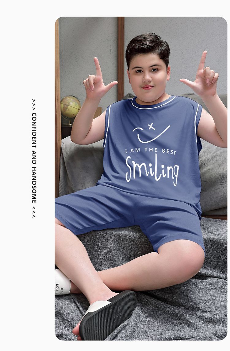 뚱뚱한 소년 잠옷 여름 새로운 모달 민소매 조끼 반바지 뚱뚱한 소년 대형 중형 및 대형 아동복스토어 가기