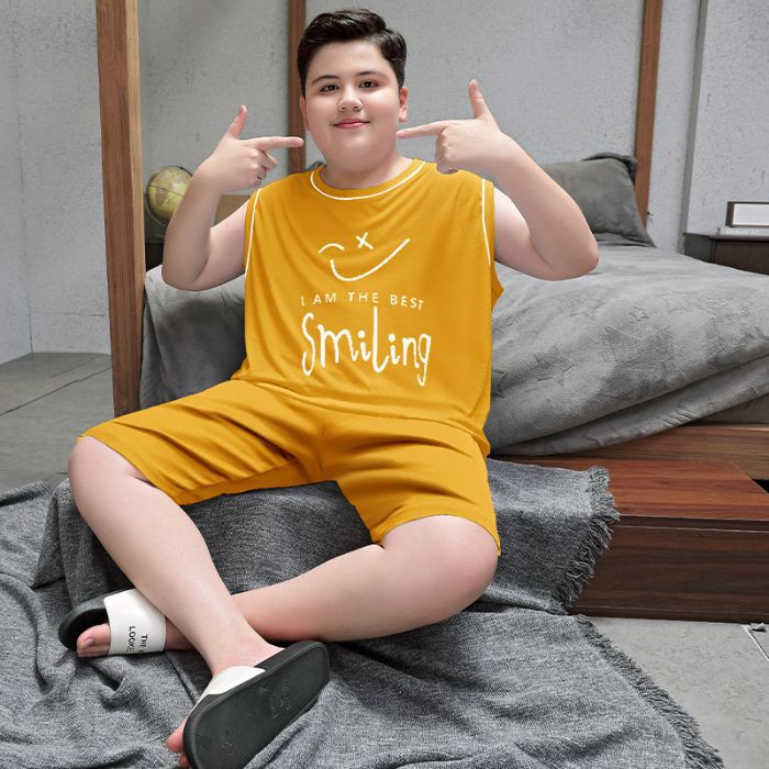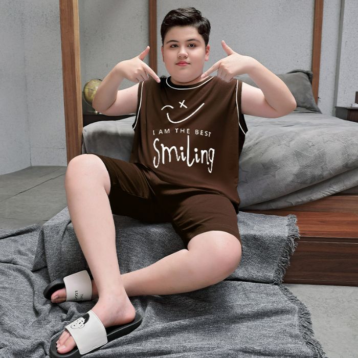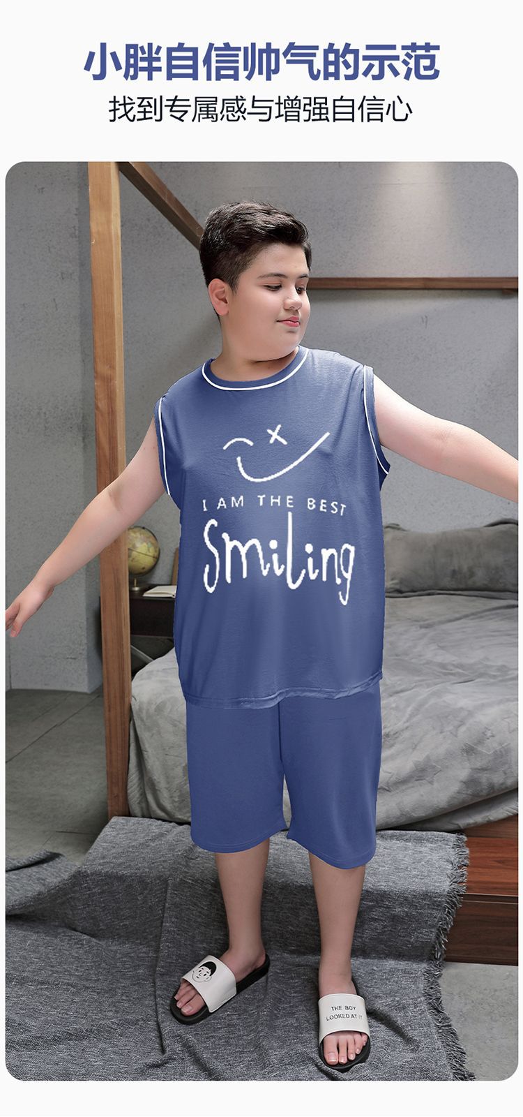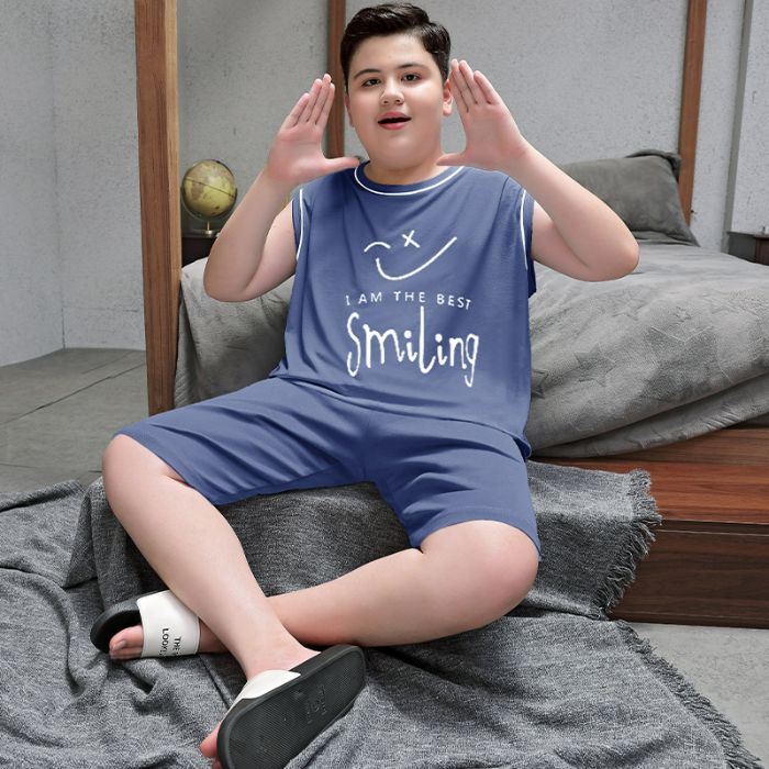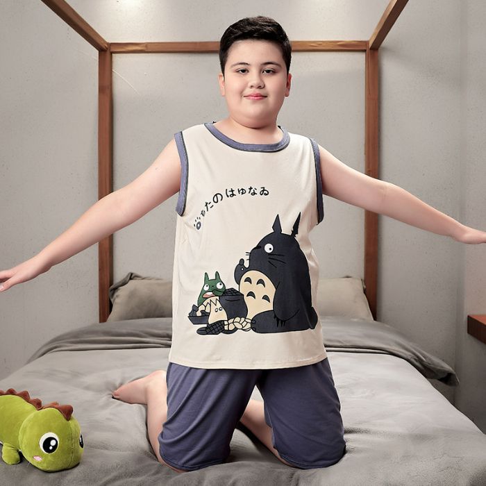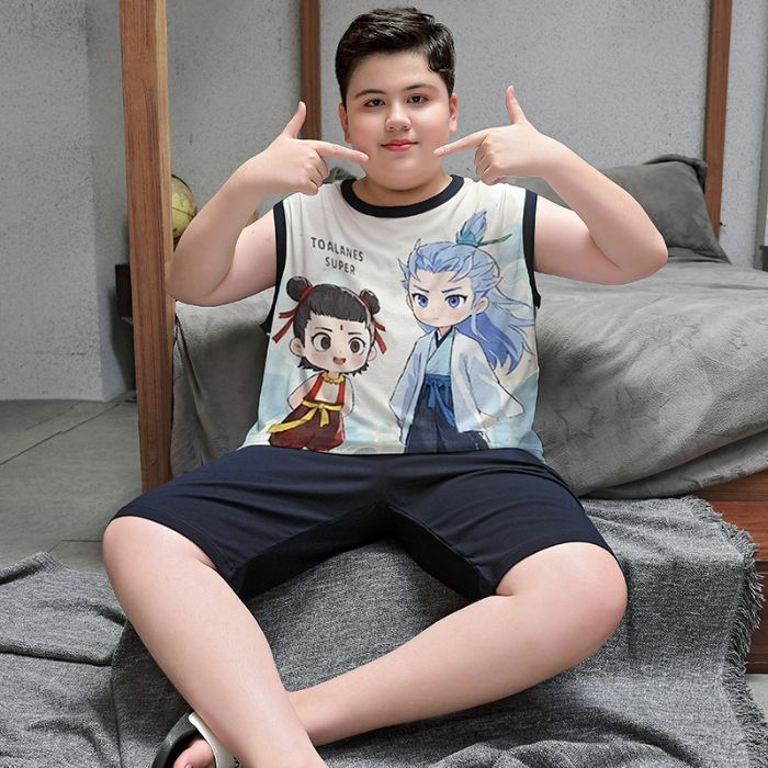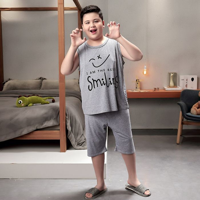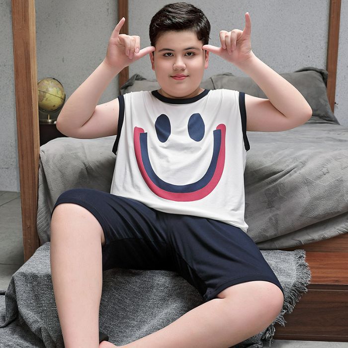 뚱뚱한 소년 잠옷 여름 새로운 모달 민소매 조끼 반바지 뚱뚱한 소년 대형 중형 및 대형 아동복스토어 가기