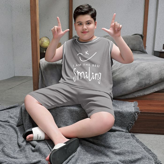 뚱뚱한 소년 잠옷 여름 새로운 모달 민소매 조끼 반바지 뚱뚱한 소년 대형 중형 및 대형 아동복