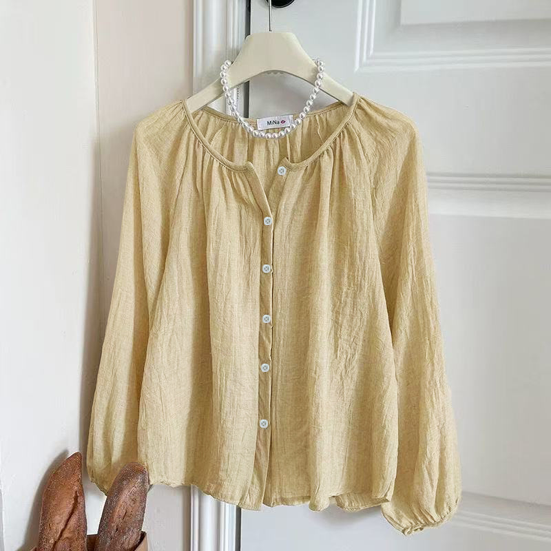 여름 풍선 슬리브 빈티지 휴가 스타일 코튼 린넨 썬 프로텍션 셔츠 여성 의류스토어 가기
