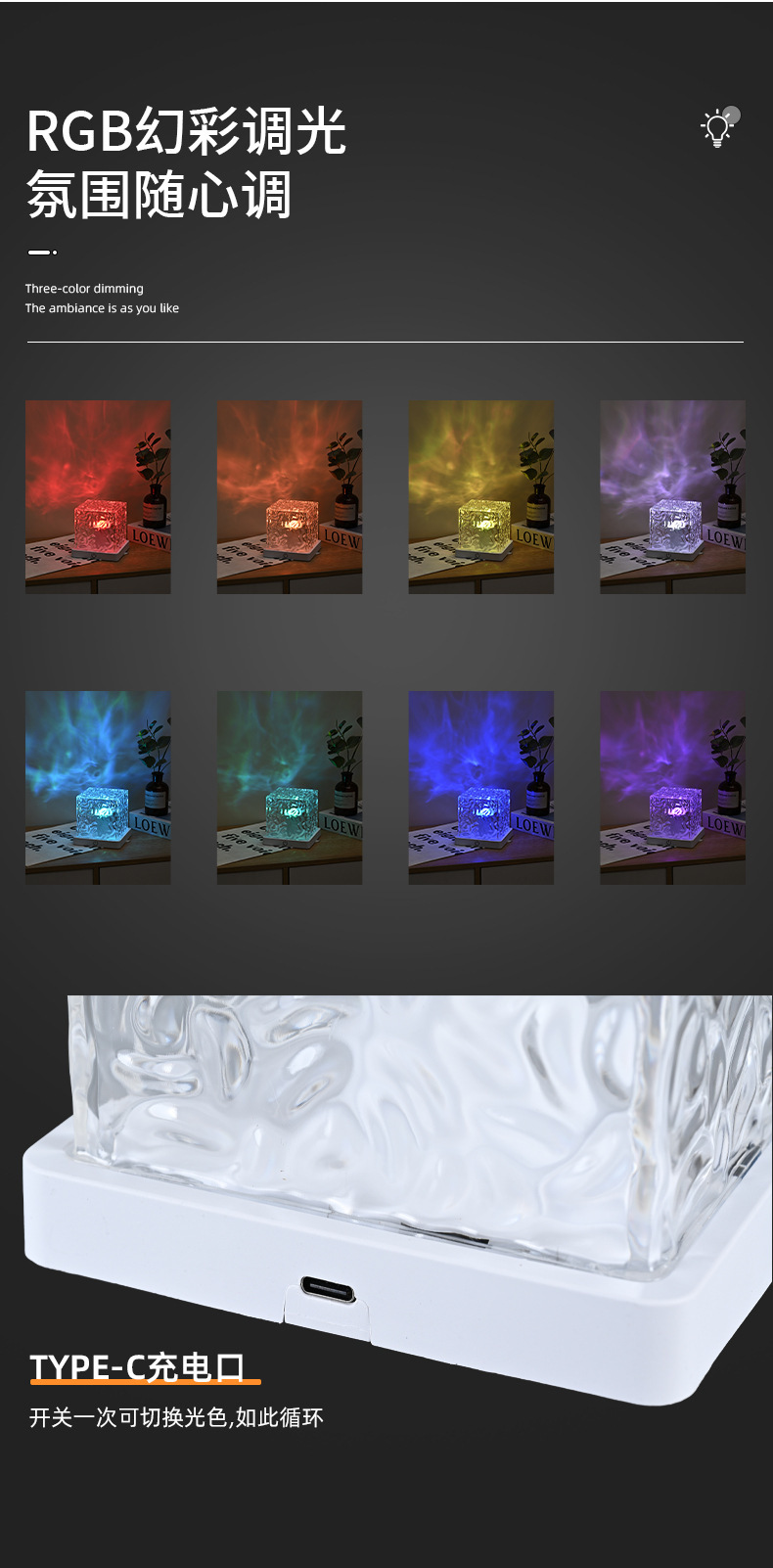 물결무늬 분위기등 침실 분위기 수면등 LED 회전등 로맨틱 별빛등 침대 옆 야간등