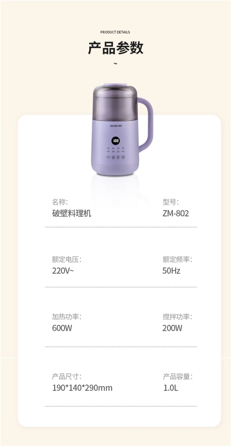 독일 Zhemi 가정용 미니 두유 기계 방음 벽 깨진 저음 완전 자동 소형 가열 다기능 요리스토어 가기