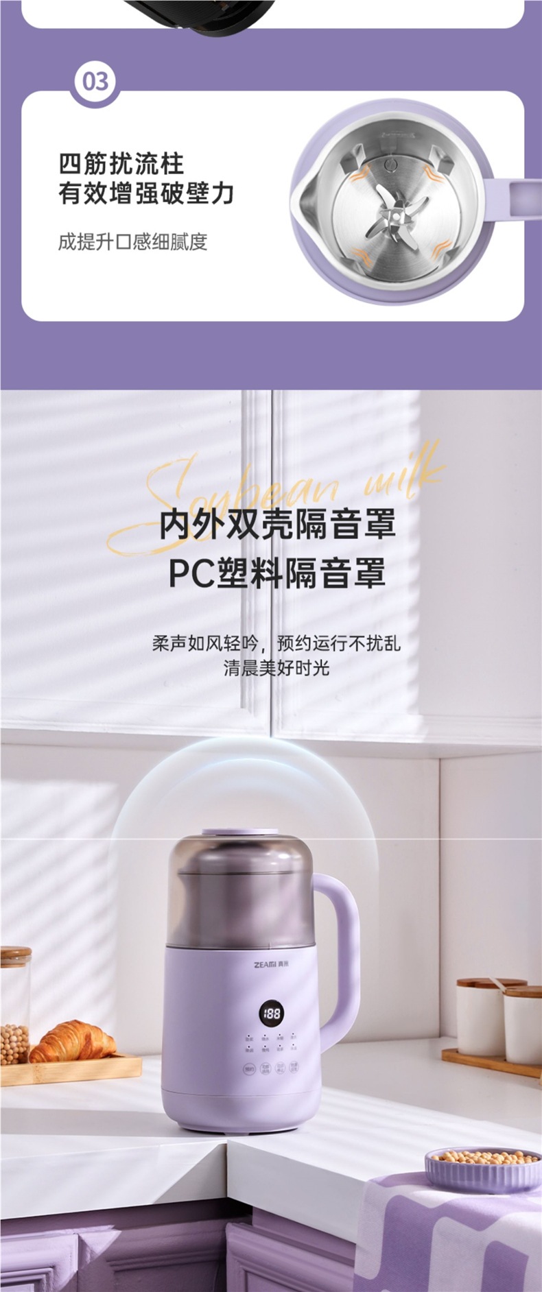 독일 Zhemi 가정용 미니 두유 기계 방음 벽 깨진 저음 완전 자동 소형 가열 다기능 요리