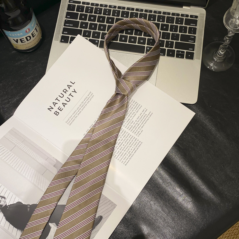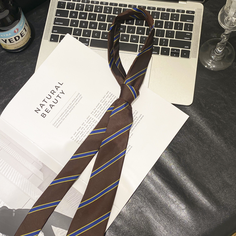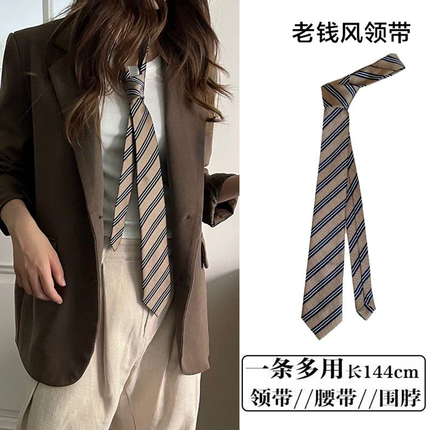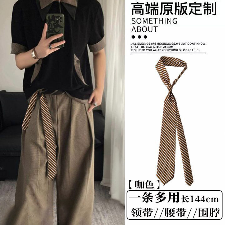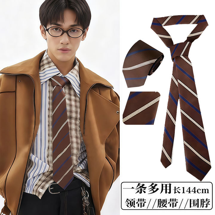 • 브라운 스트라이프 통근 스타일 타이 벨트-140cm