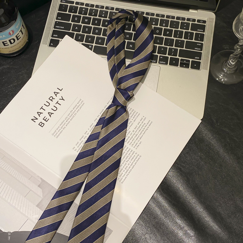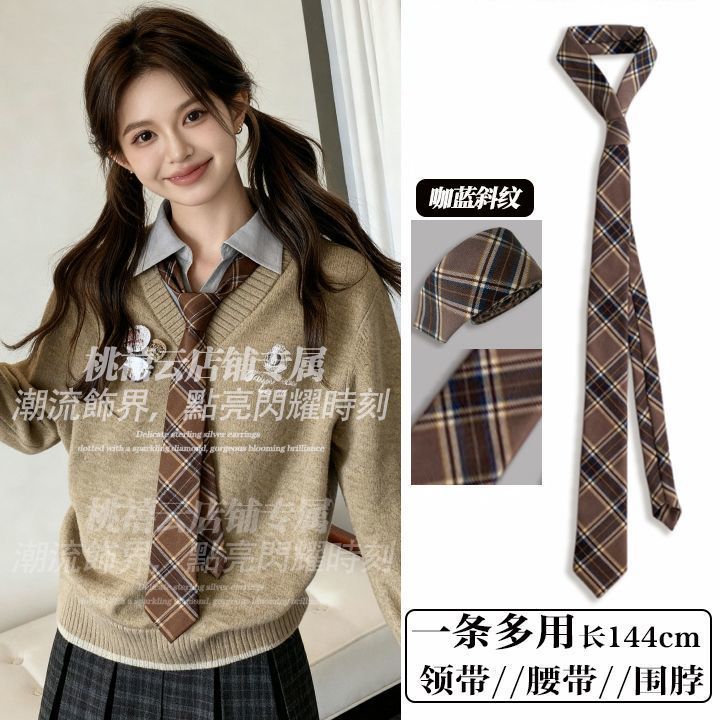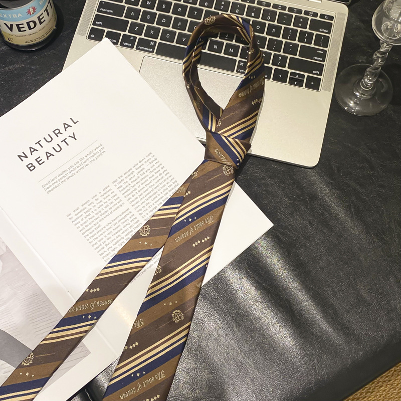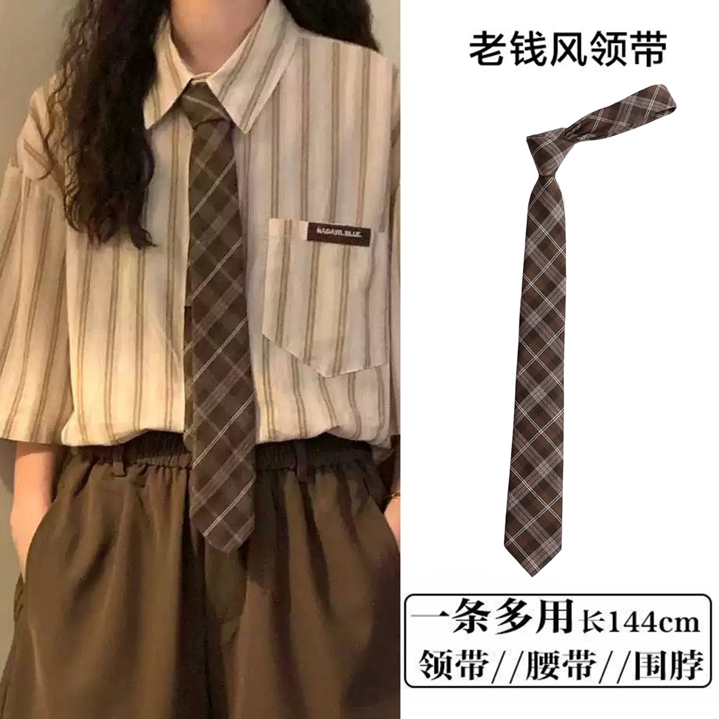 • 브라운 스트라이프 통근 스타일 타이 벨트-140cm