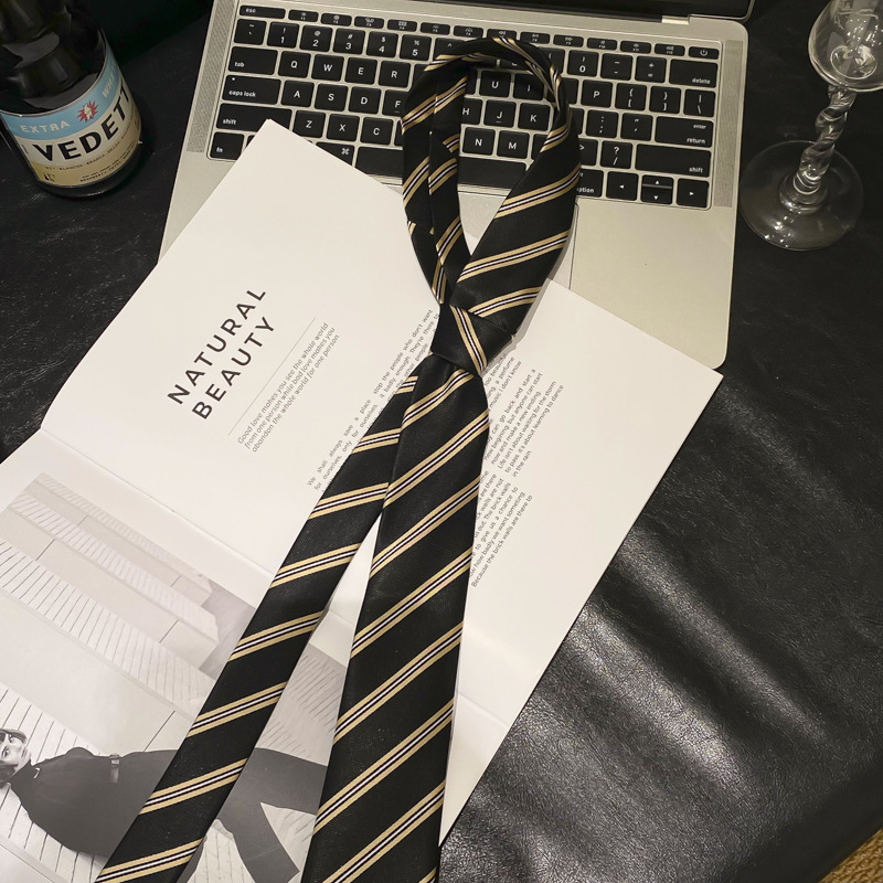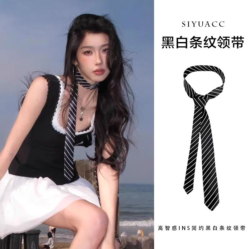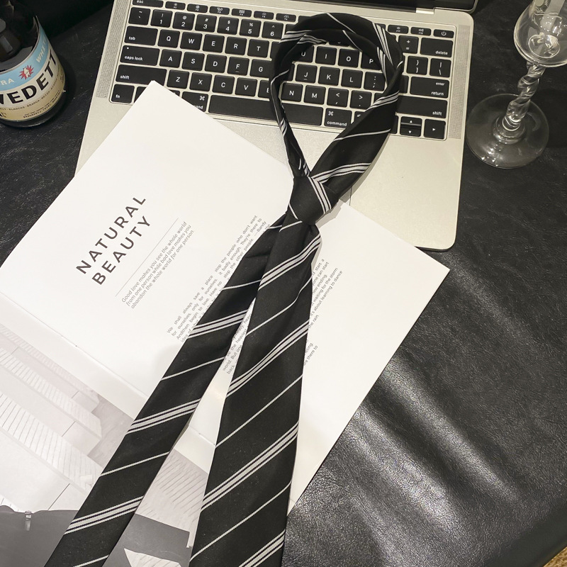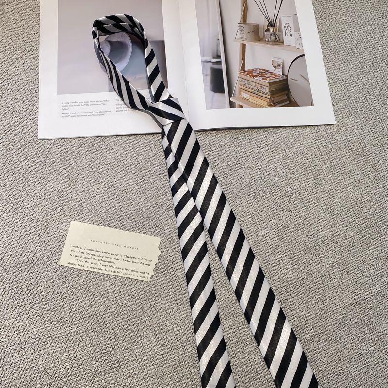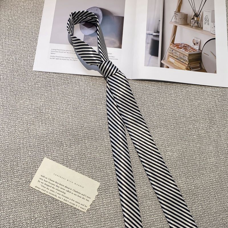 • 흑백 대비 얇은 대각선 줄무늬 넥타이 - 약 148cm