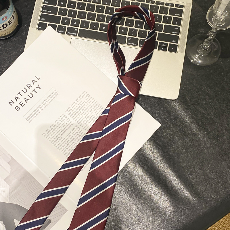 • 컬리지 스타일 스트라이프 숏노타이 - 약 23cm