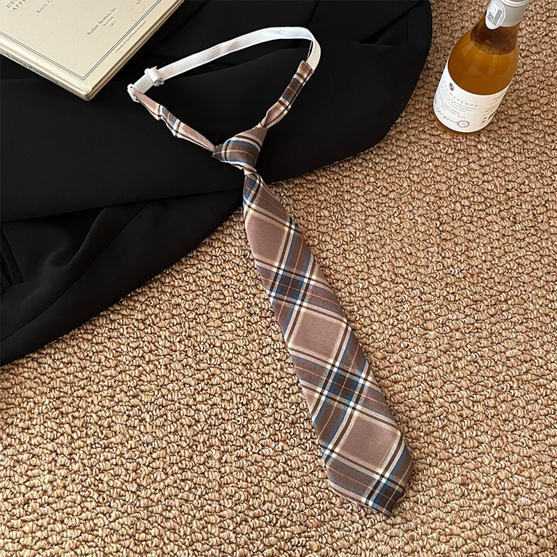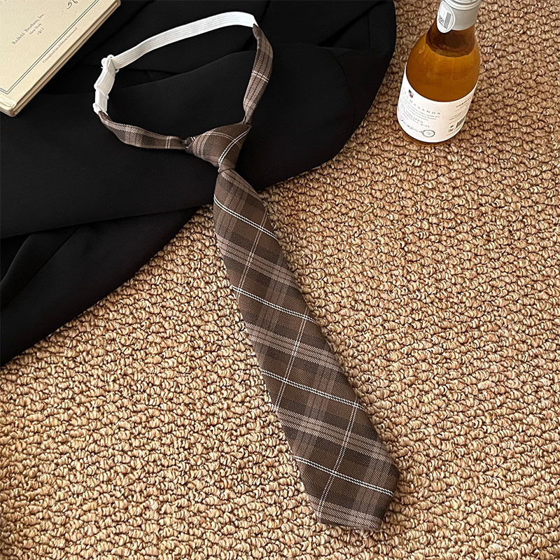 • 갈색 체크무늬 롱 노타이 넥타이 - 약 31cm