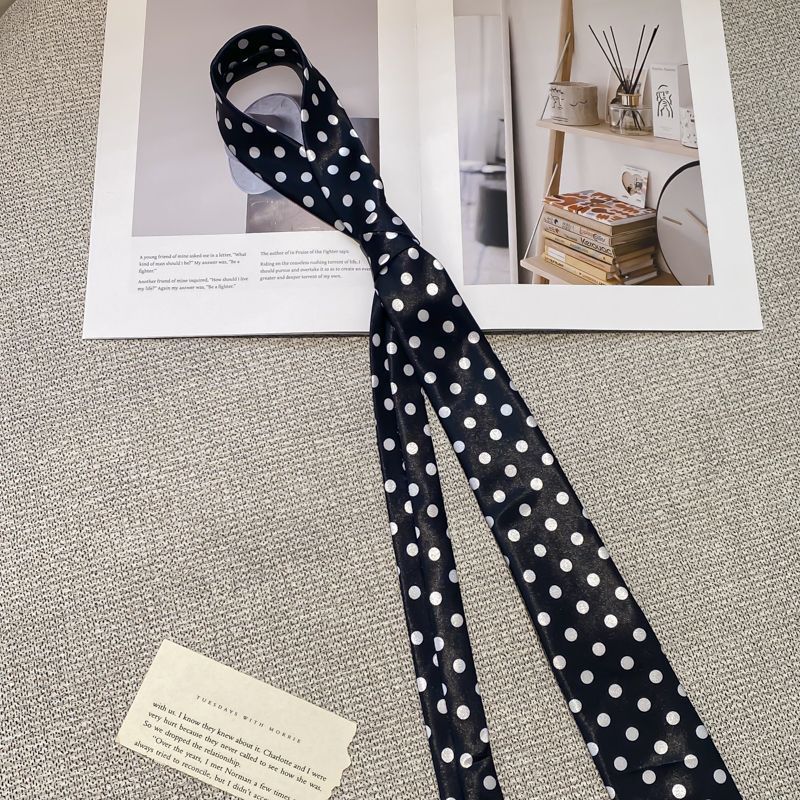 • 흰색 물방울무늬 검정색 넥타이 - 약 148cm