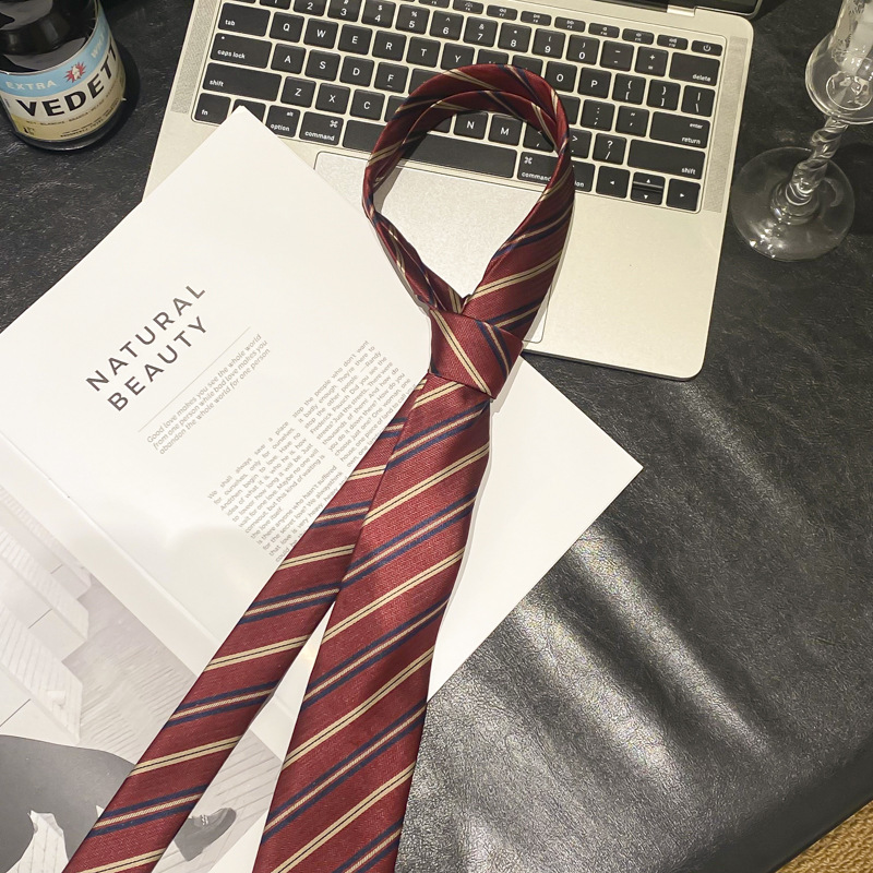 • 레드 블랙 스트라이프 골드 평행선 넥타이