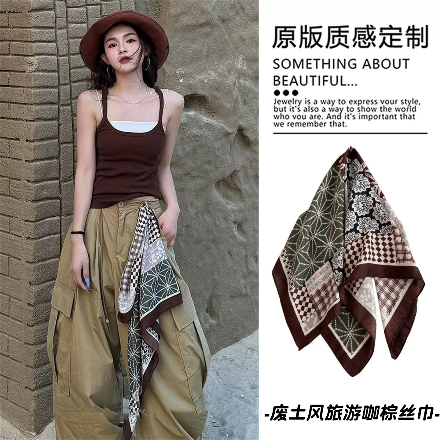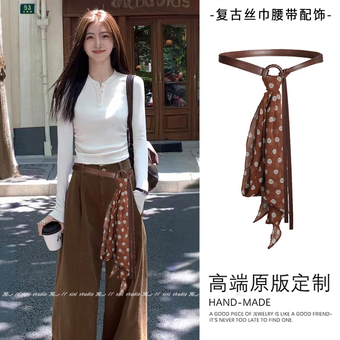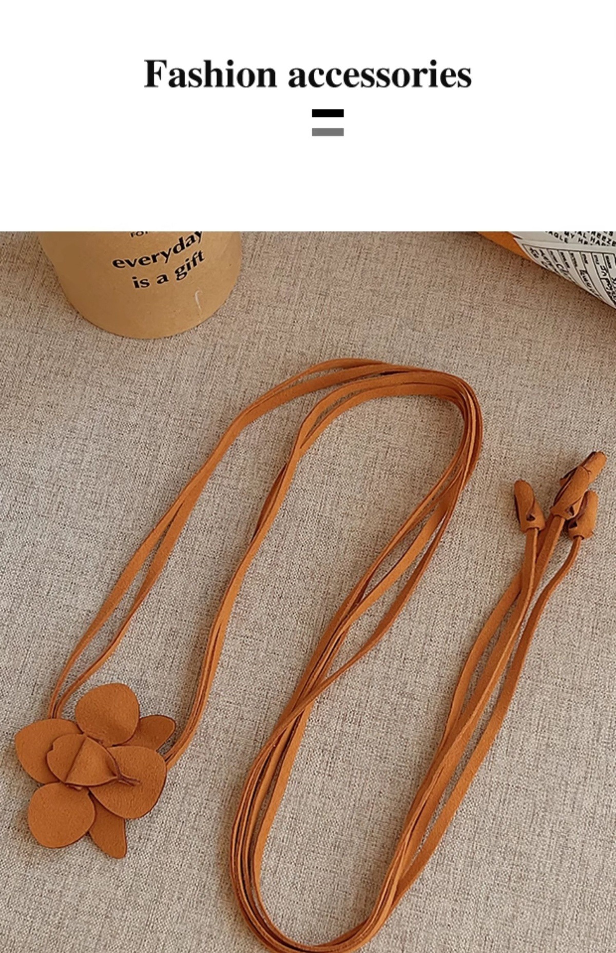 • 브라운 리본 캐슈 플라워 실크 스카프 벨트 [135*175]