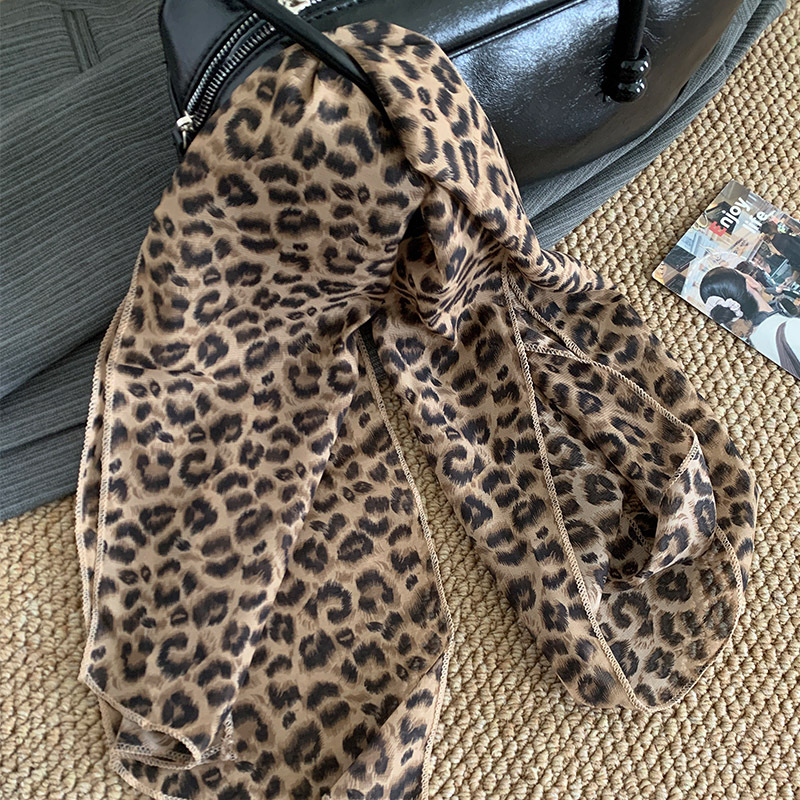 • 레오파드 프린트 실크 스카프-180cm