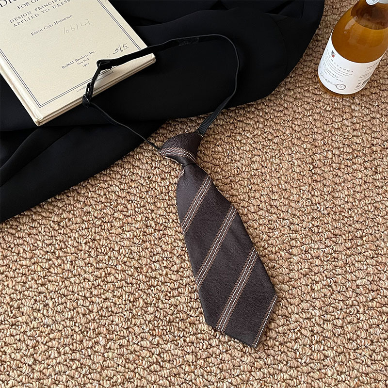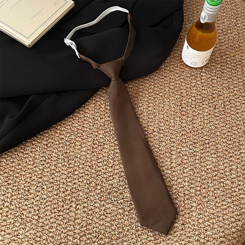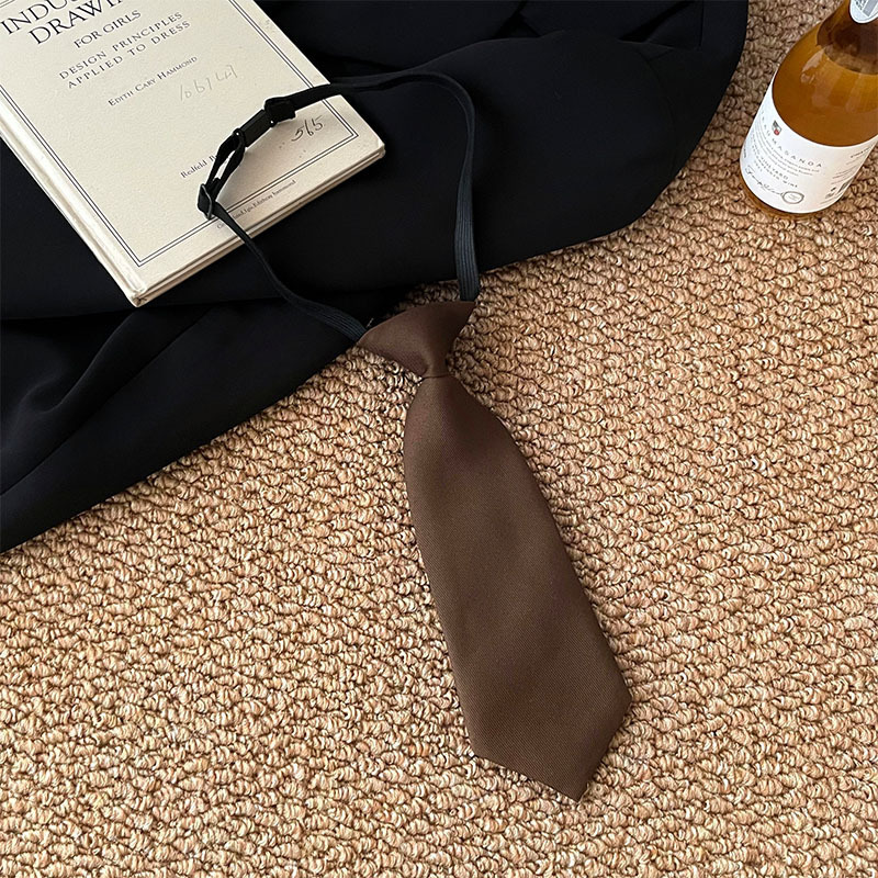 • 갈색 숏 기장 노타이 넥타이 - 약 23cm
