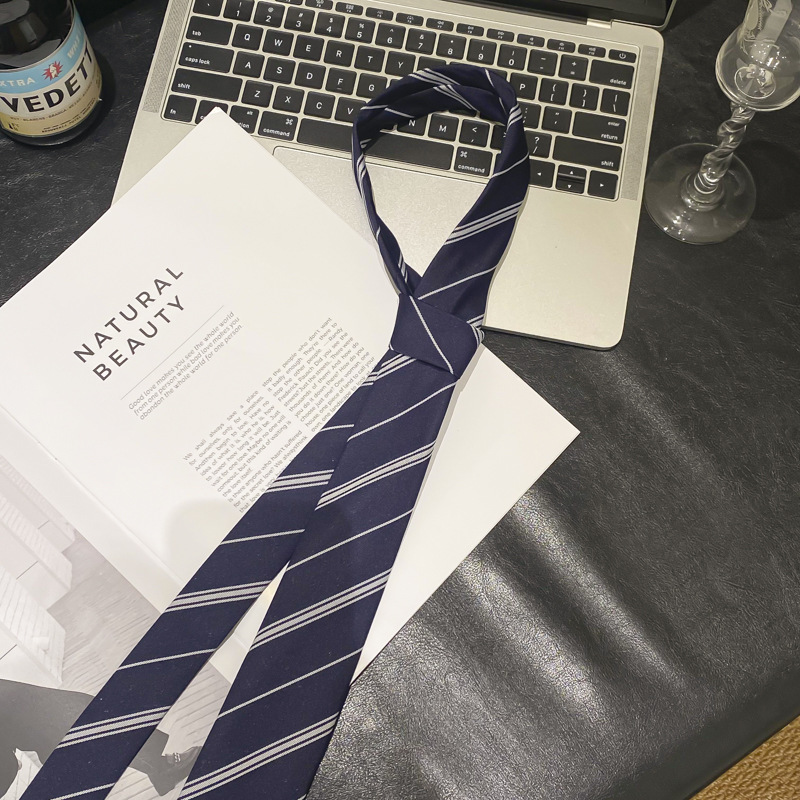 • 컬리지 스타일 스트라이프 롱 노타이 타이 - 약 31cm