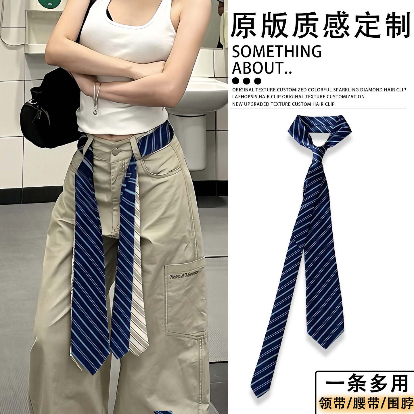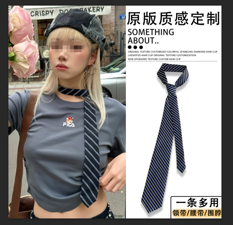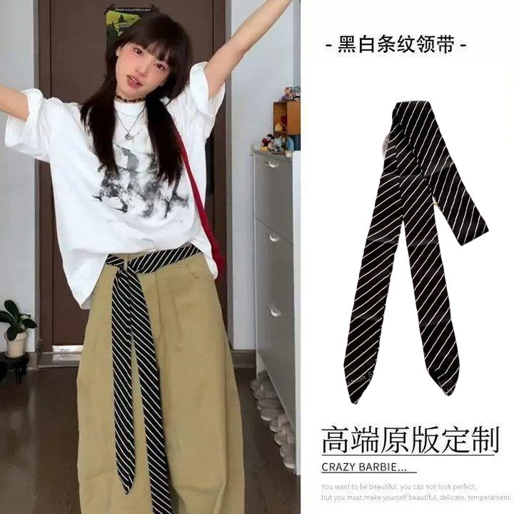 • 핑크 스트라이프 통근 스타일 넥타이 벨트-140cm