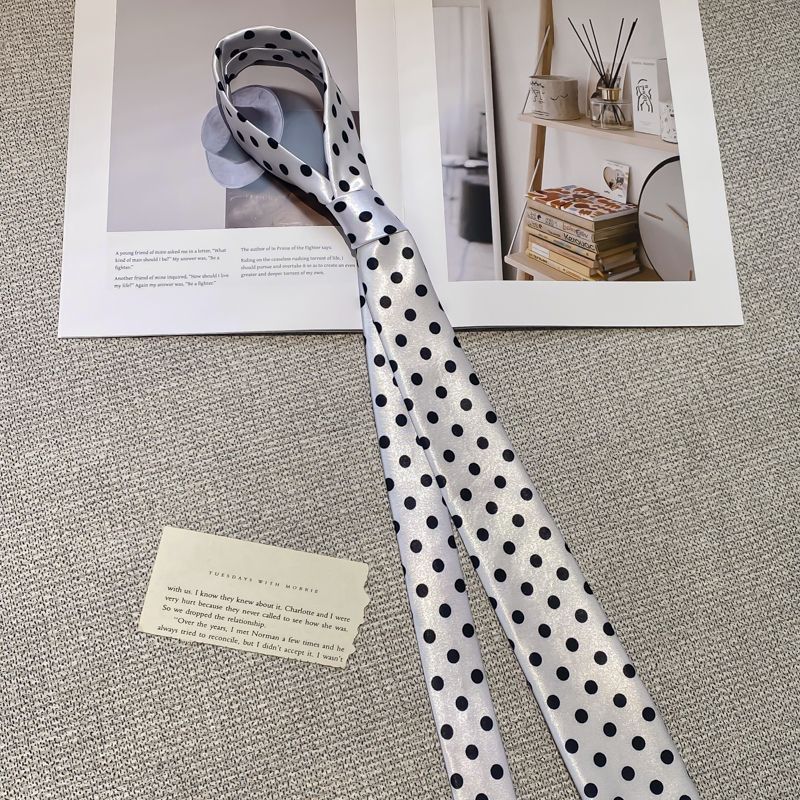 • 검정 물방울무늬 흰색 바탕 넥타이 - 약 148cm