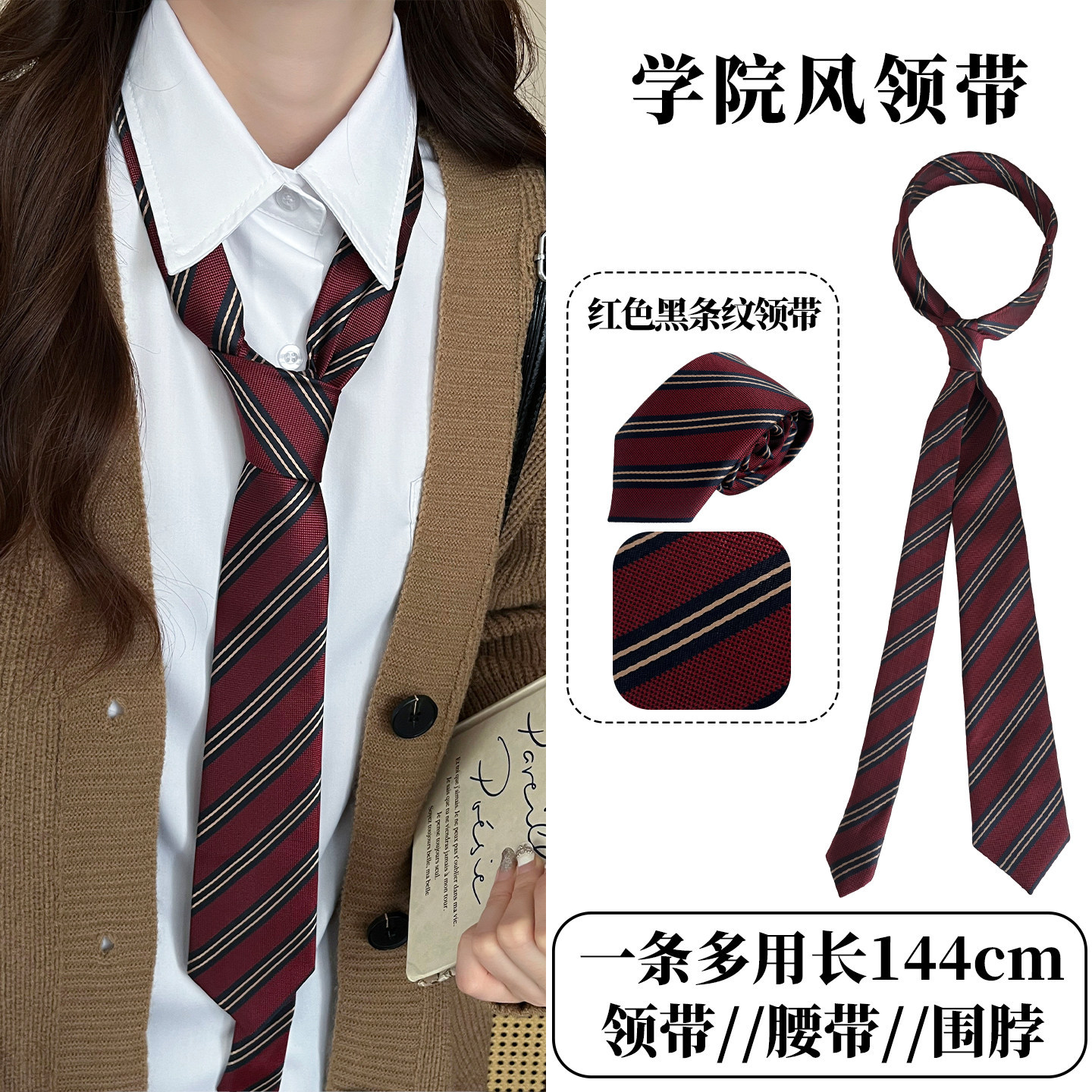 • 흑백 스트라이프 레드 타이 - 약 148cm