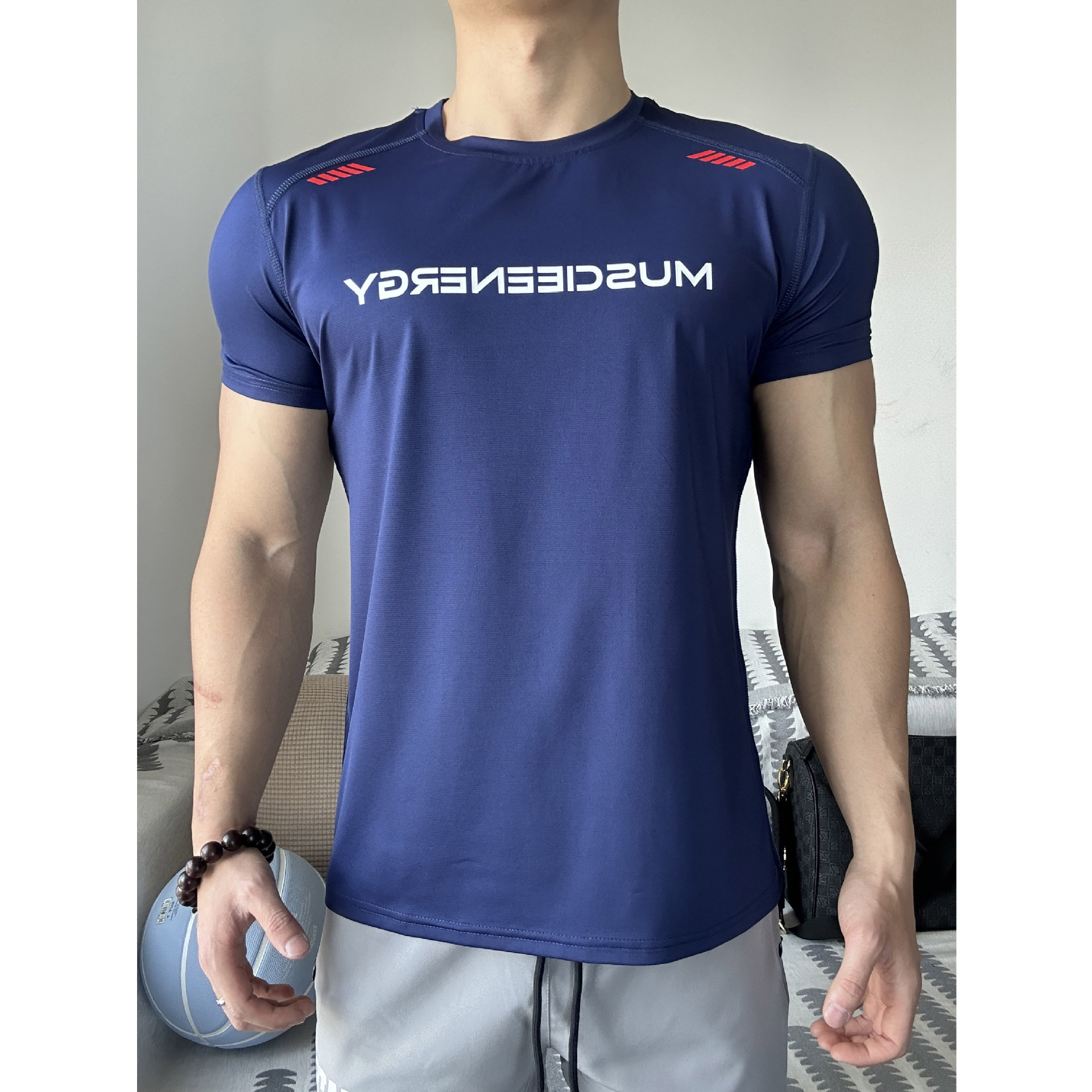 얼음 느낌의 남성용 짧은 T 고탄성 주름 방지 여름 가볍고 속건성 통기성 캐주얼 스포츠 야외 피트니스 트레이닝 의류