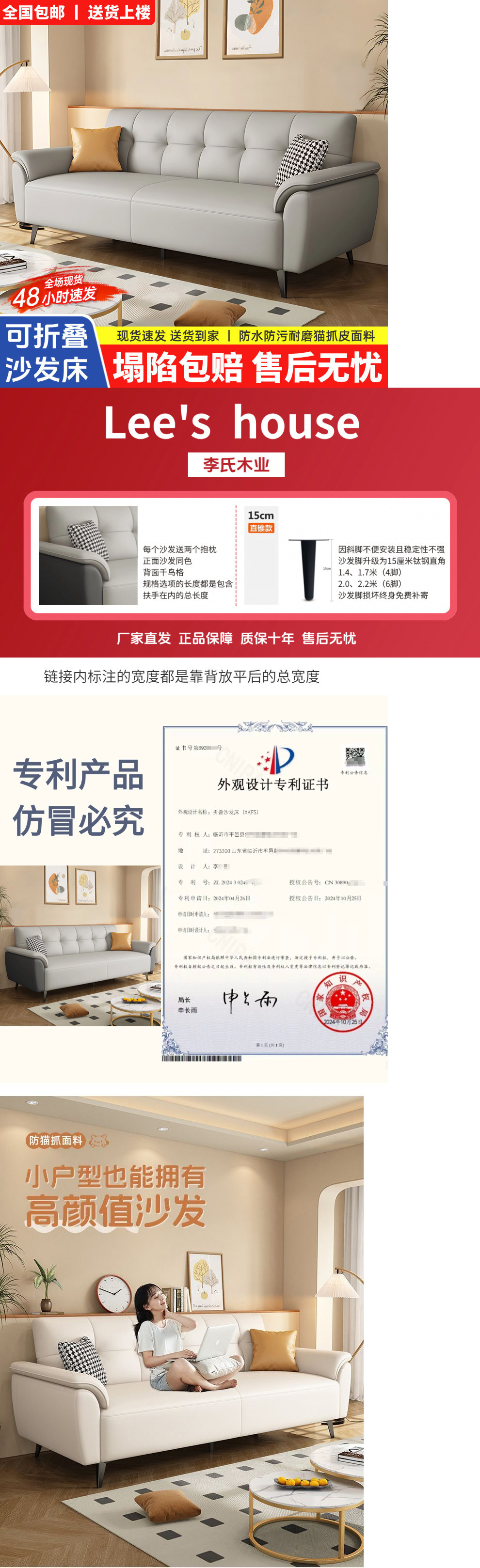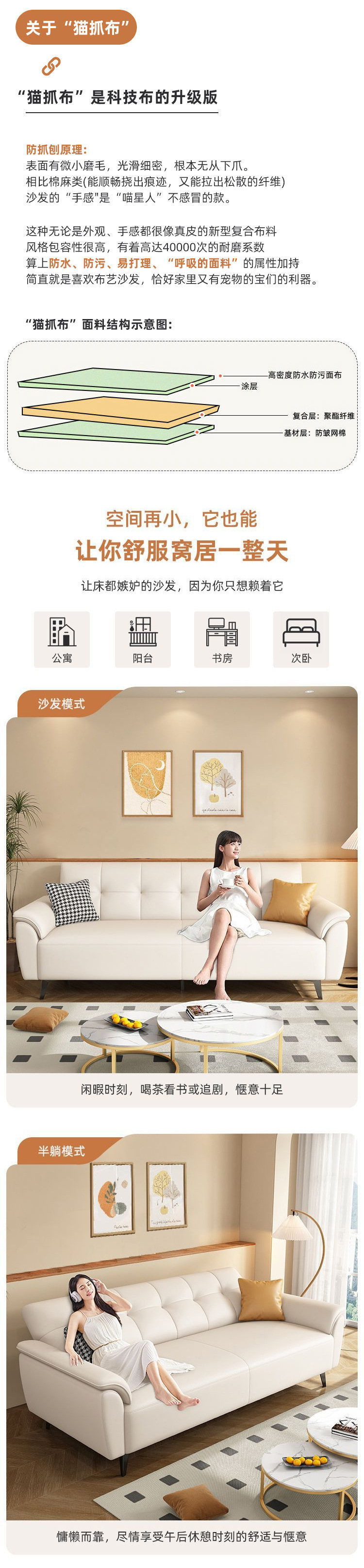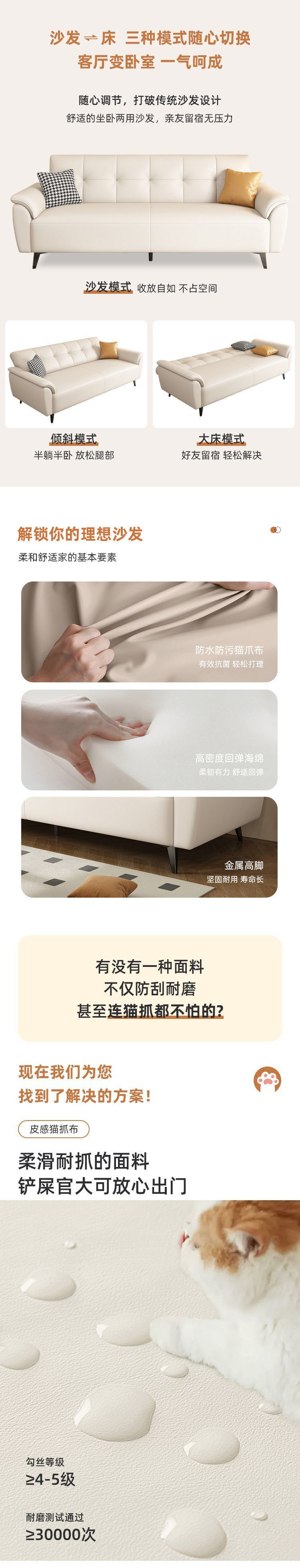 새로운 기술 천 고양이 발톱 천 작은 아파트 임대 작은 간단한 저렴한 Foshan 공장 소파 침대스토어 가기