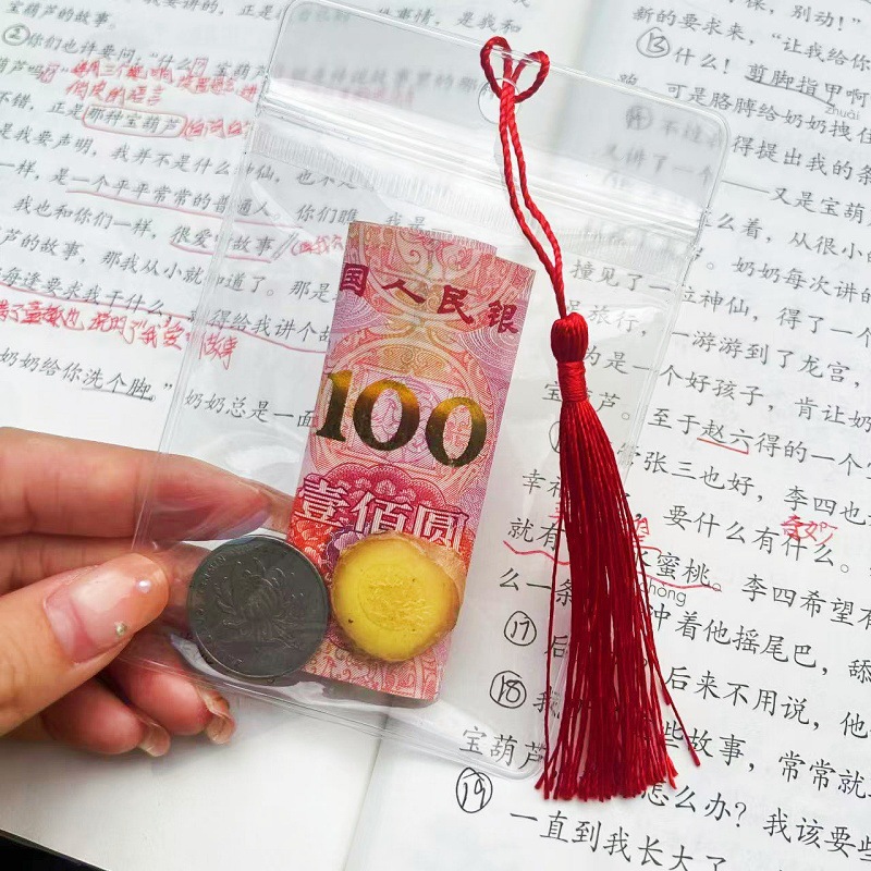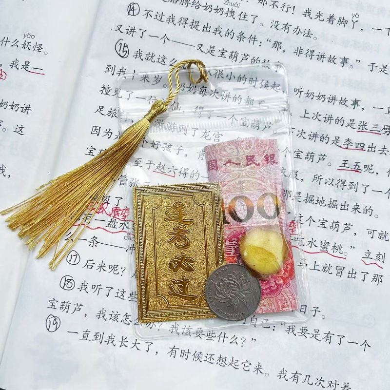 • 투명가방 + 빨간 술 + 모든 시험에 합격해야 하는 카드 [행운을 빌어요]