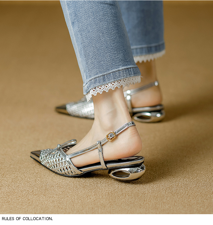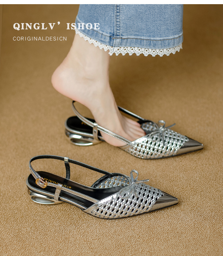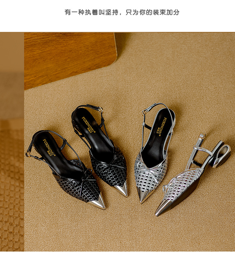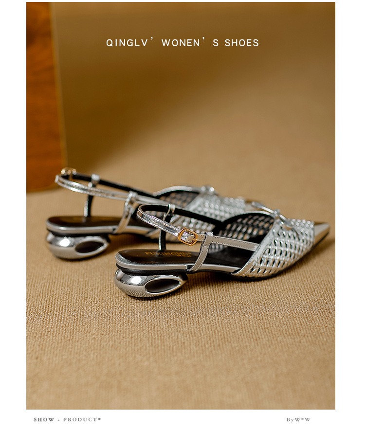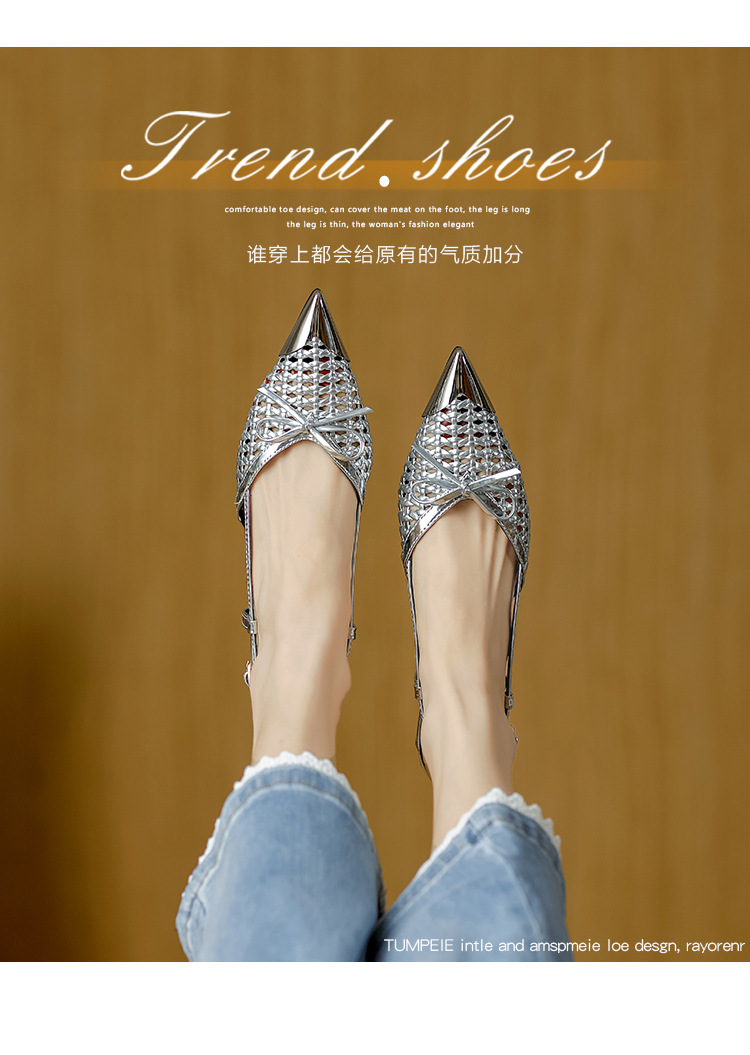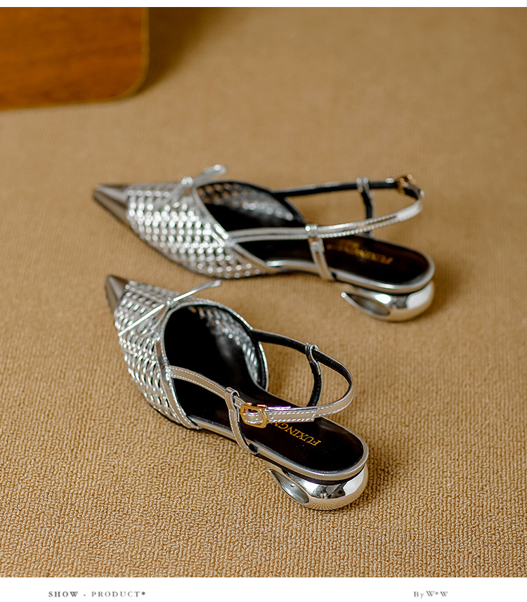 복성여성의 아름다운 뾰족코 하이힐 2025 여름 신상 섹시하고 아방가르드한 메탈 토캡 뒤가 빈 샌들스토어 가기
