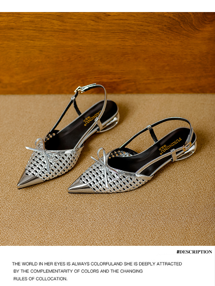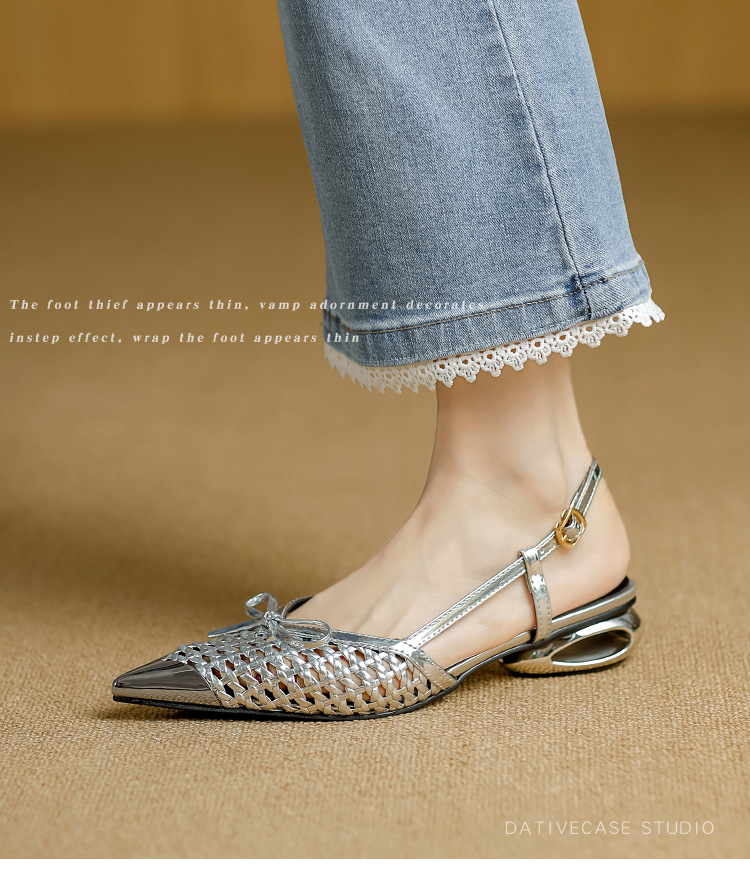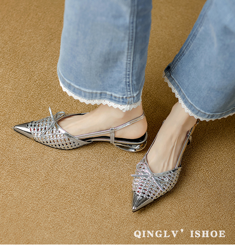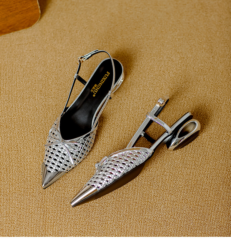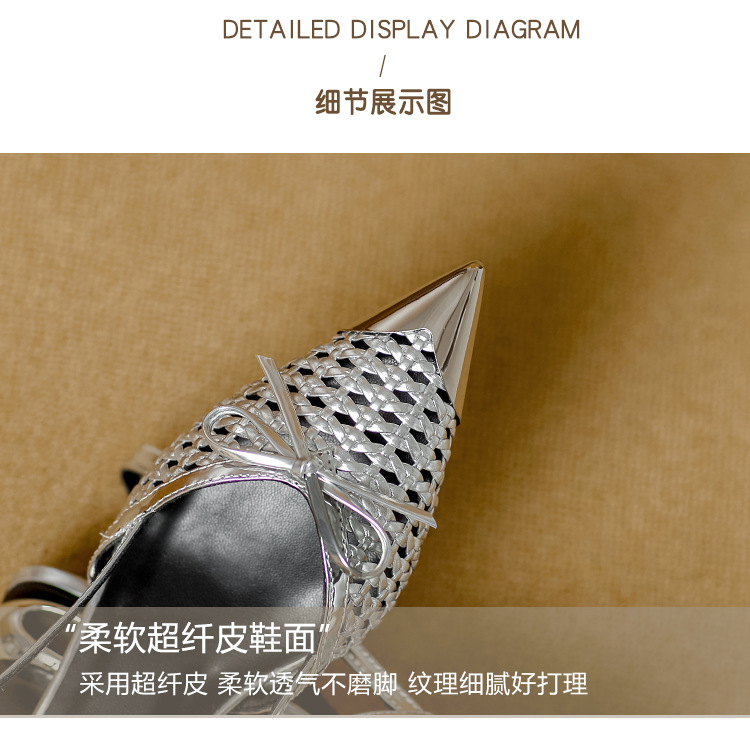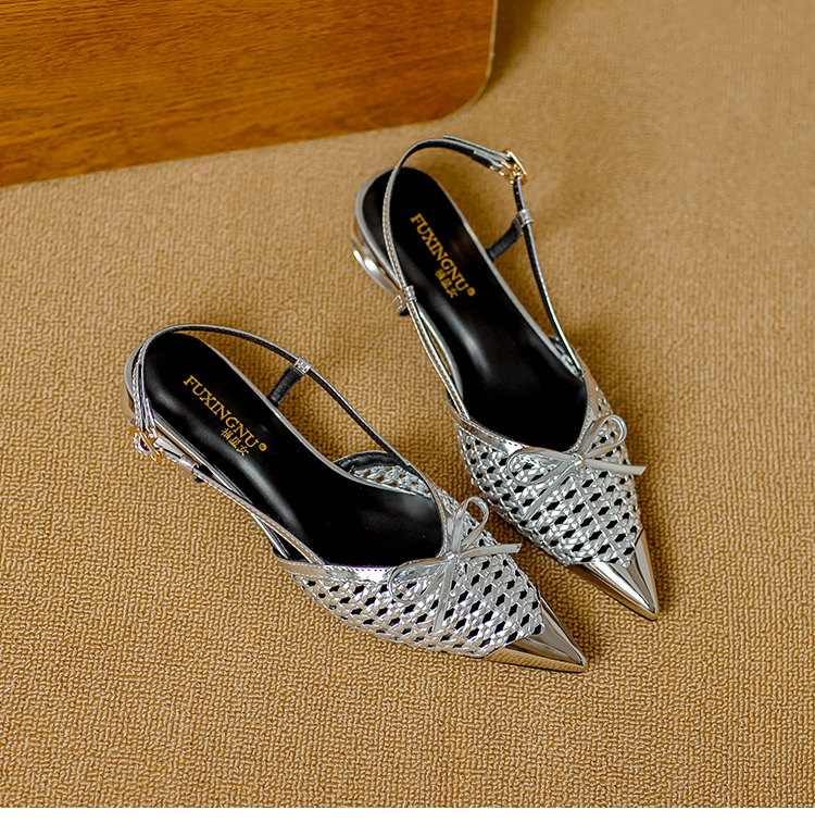 복성여성의 아름다운 뾰족코 하이힐 2025 여름 신상 섹시하고 아방가르드한 메탈 토캡 뒤가 빈 샌들스토어 가기