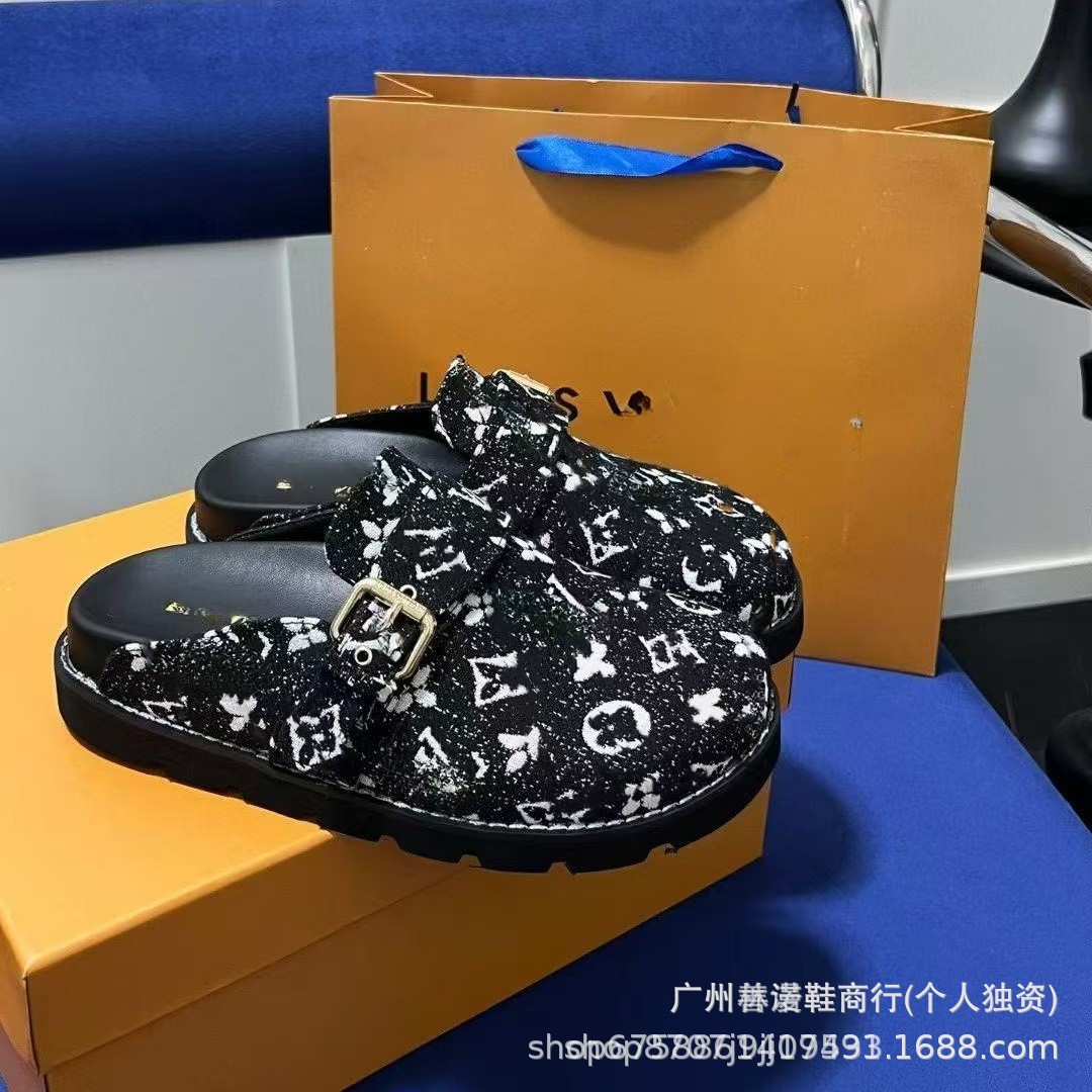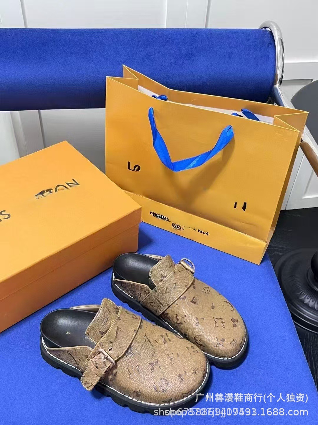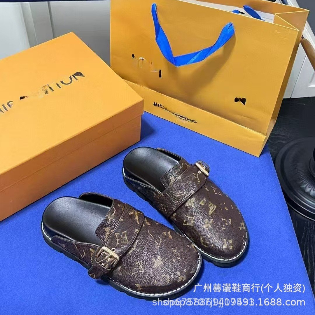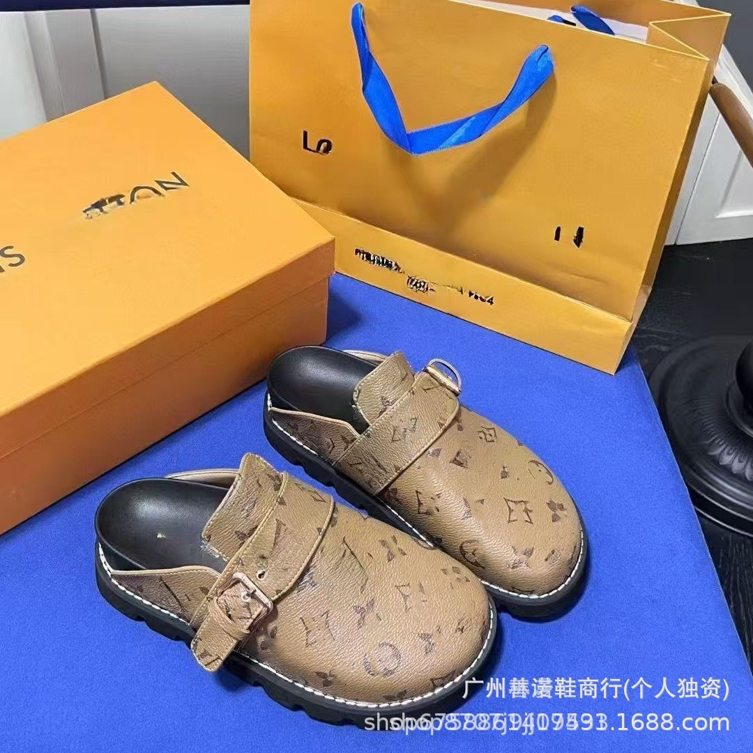 유럽과 미국의 대외 무역 바오터우 두꺼운 밑창 슬리퍼 L의 새로운 복고풍 겉옷 벨트 버클 남성과 여성을위한 같은 스타일 슬리퍼 공장 직접 판매스토어 가기