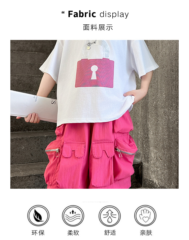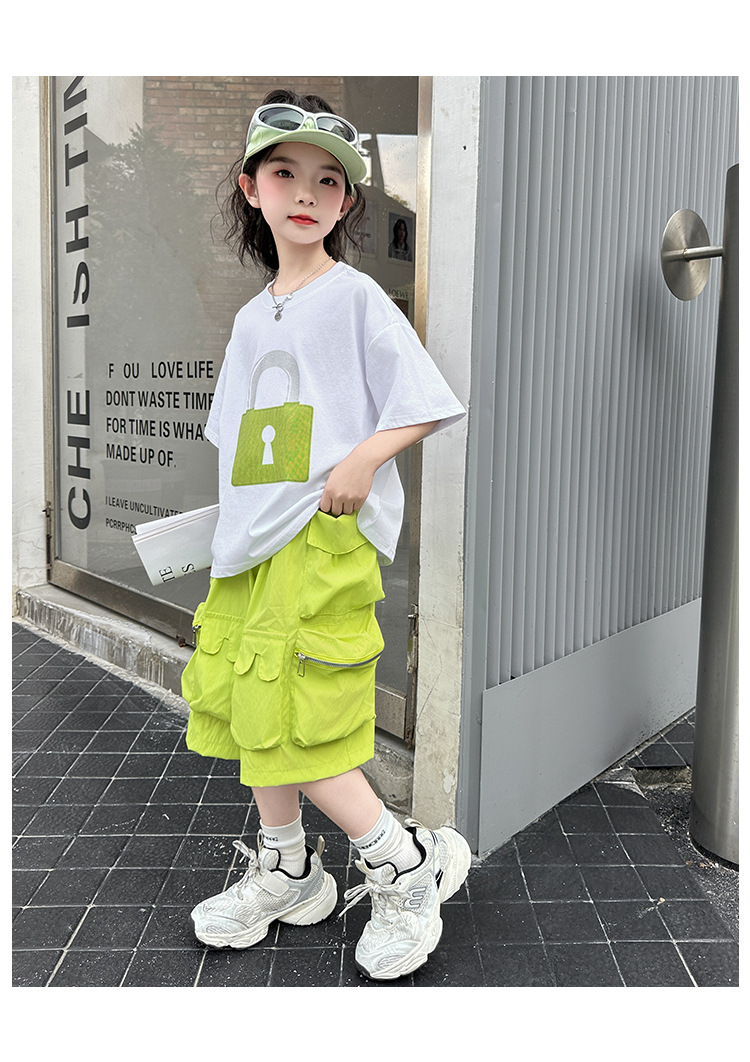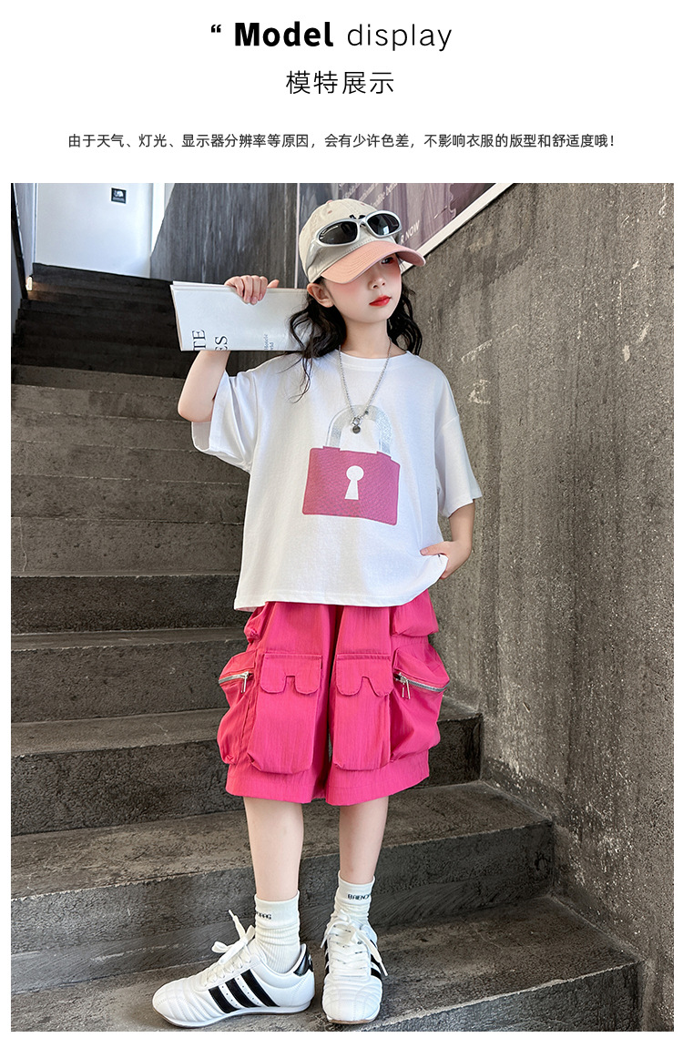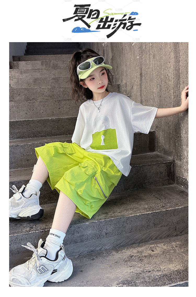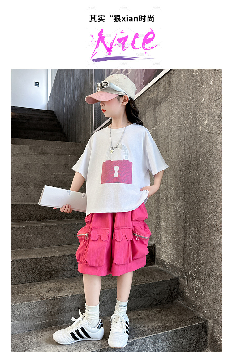 여아 정장 2025 여름 새 스타일 아동용 반팔 카고 반바지 세련된 캐주얼 티셔츠 투피스 세트스토어 가기