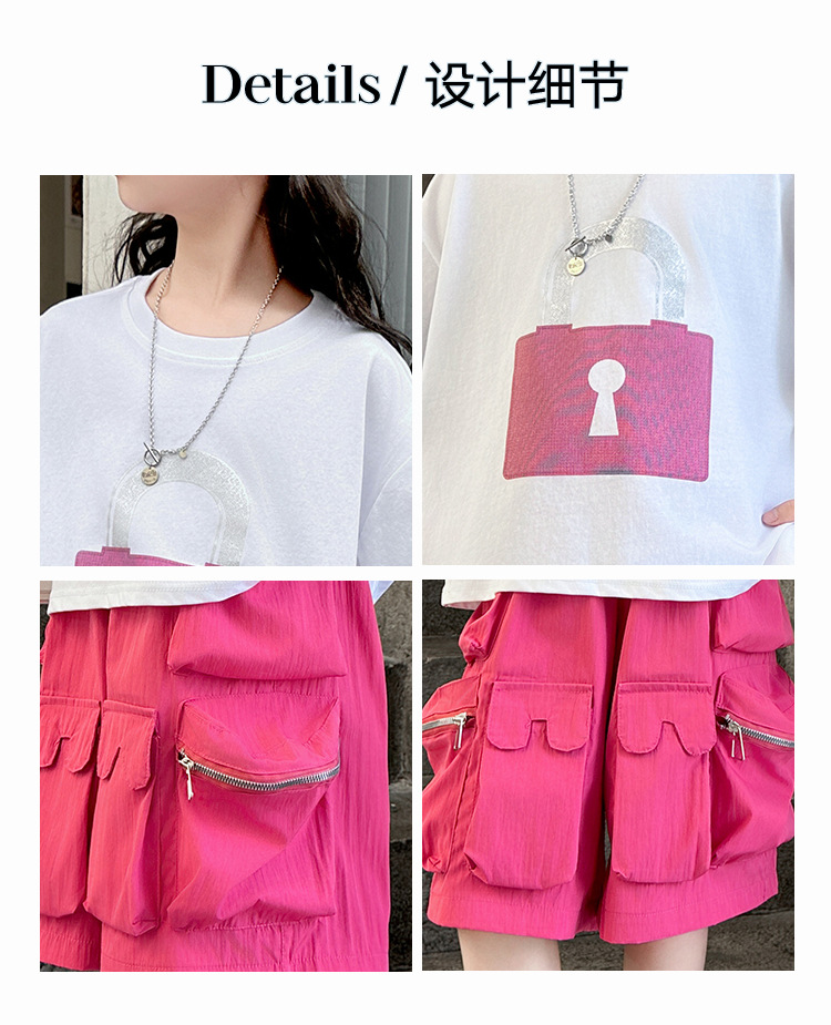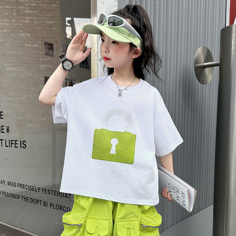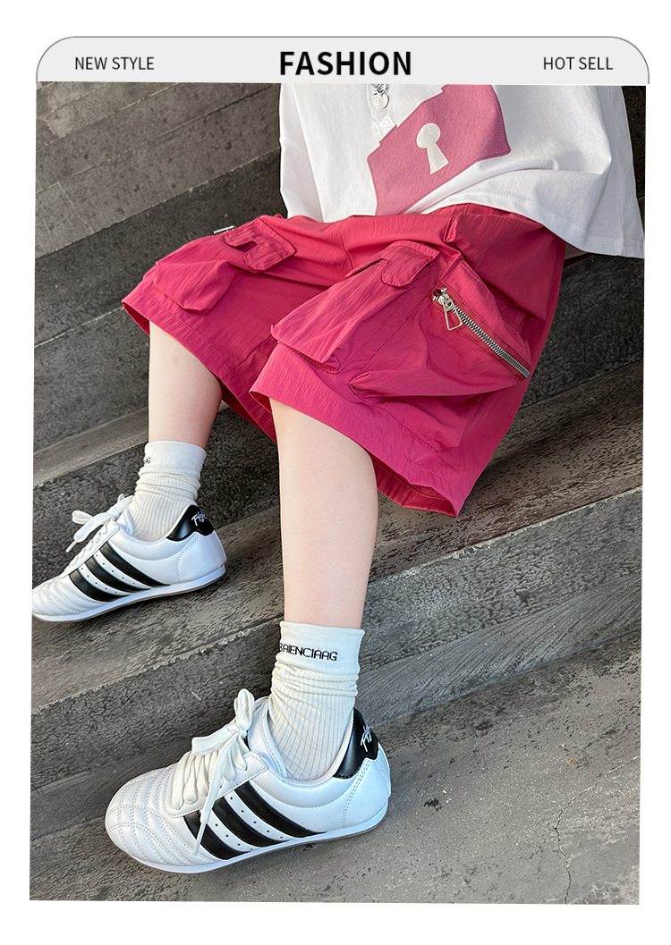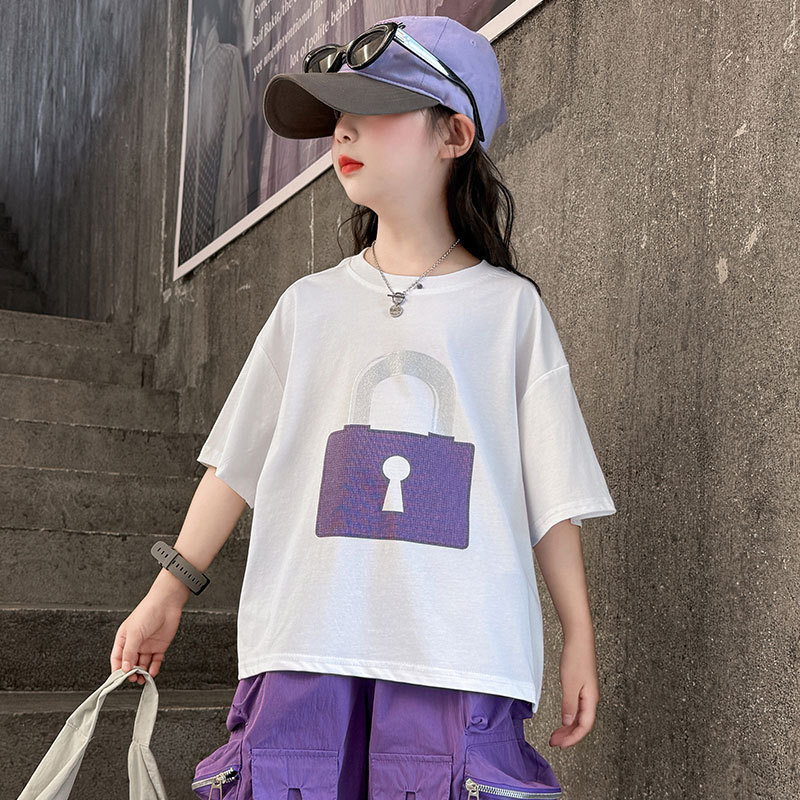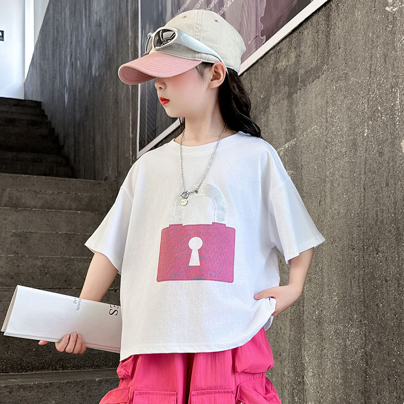 여아 정장 2025 여름 새 스타일 아동용 반팔 카고 반바지 세련된 캐주얼 티셔츠 투피스 세트스토어 가기