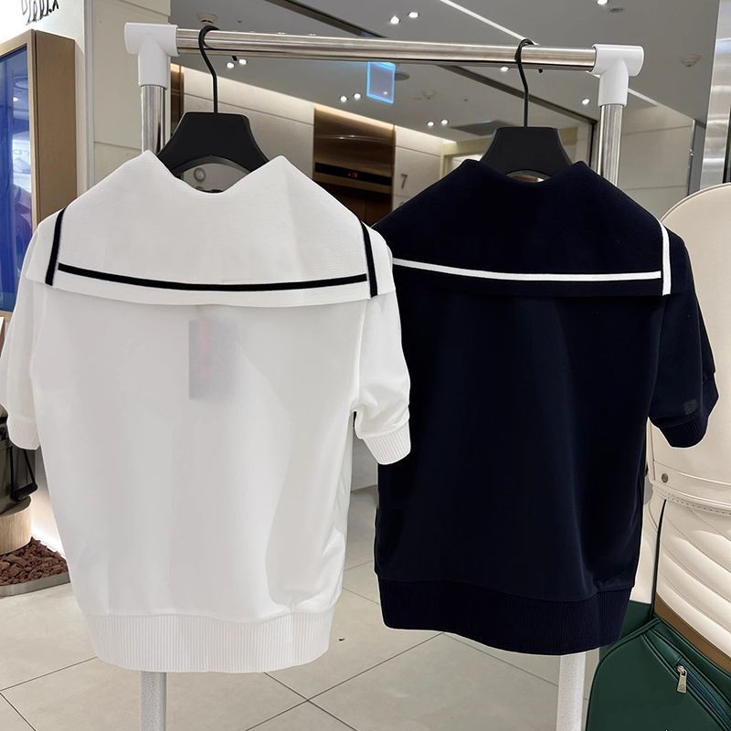 한국 오리지널 골프 여성 야외 스포츠 시크 칼라 하프 버튼 반팔 탑 슬리밍 트렌디 슈트