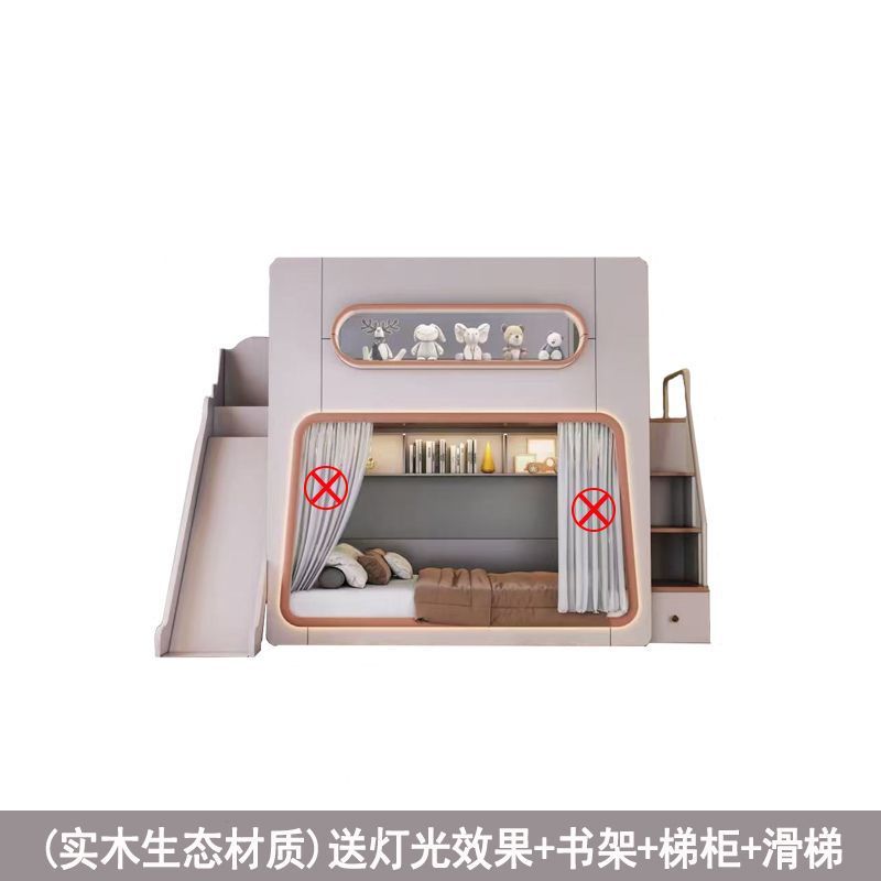 • 스페이스 침대 + 사다리 캐비닛 + 슬라이드 + 침대 커튼 (원목 생태 보드)