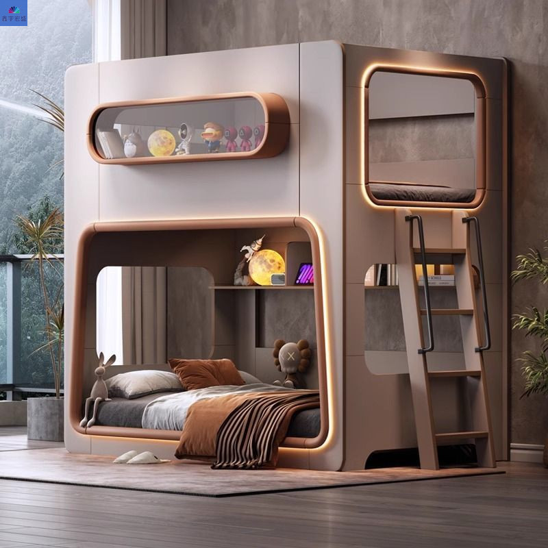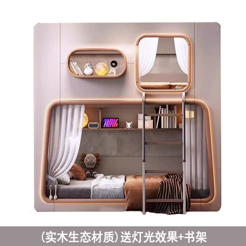패셔너블한 원목 가드레일, 스페이스 캡슐 어린이 침대, 같은 스타일의 엄마와 아이 이층 침대, 새 침대, 자매와 형제의 높낮이 침대스토어 가기