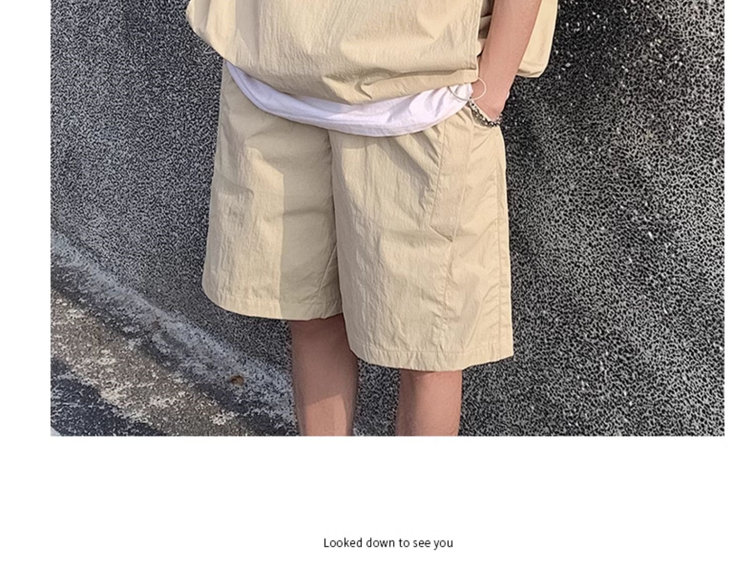 여름 신작 작업복 트렌디 브랜드 캐주얼 스포츠 정장 남성용 아이스 느낌 하프 지퍼 후드 다용도 속건 반팔 반바지
