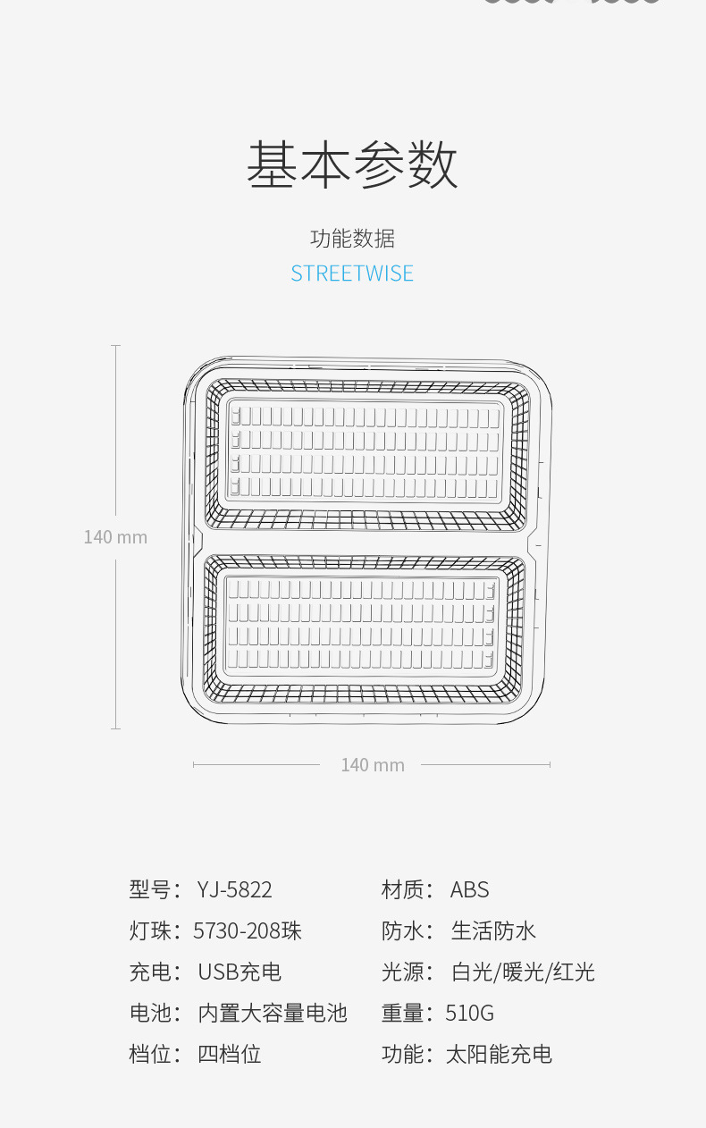 • YJ-5822B 대형 투광 태양광 조명-단일 램프