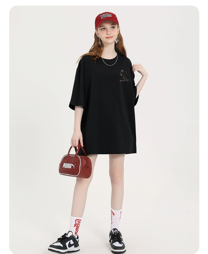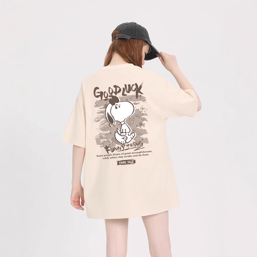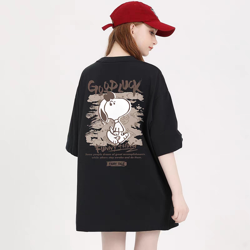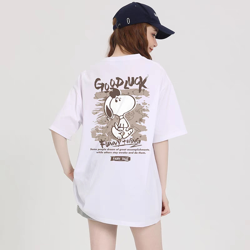국경을 넘나드는 인기 판매 모델 앞면과 뒷면 스누피 프린트 티셔츠 여성 여름 신작 라운드 넥 캐주얼 패션 반팔 탑스토어 가기
